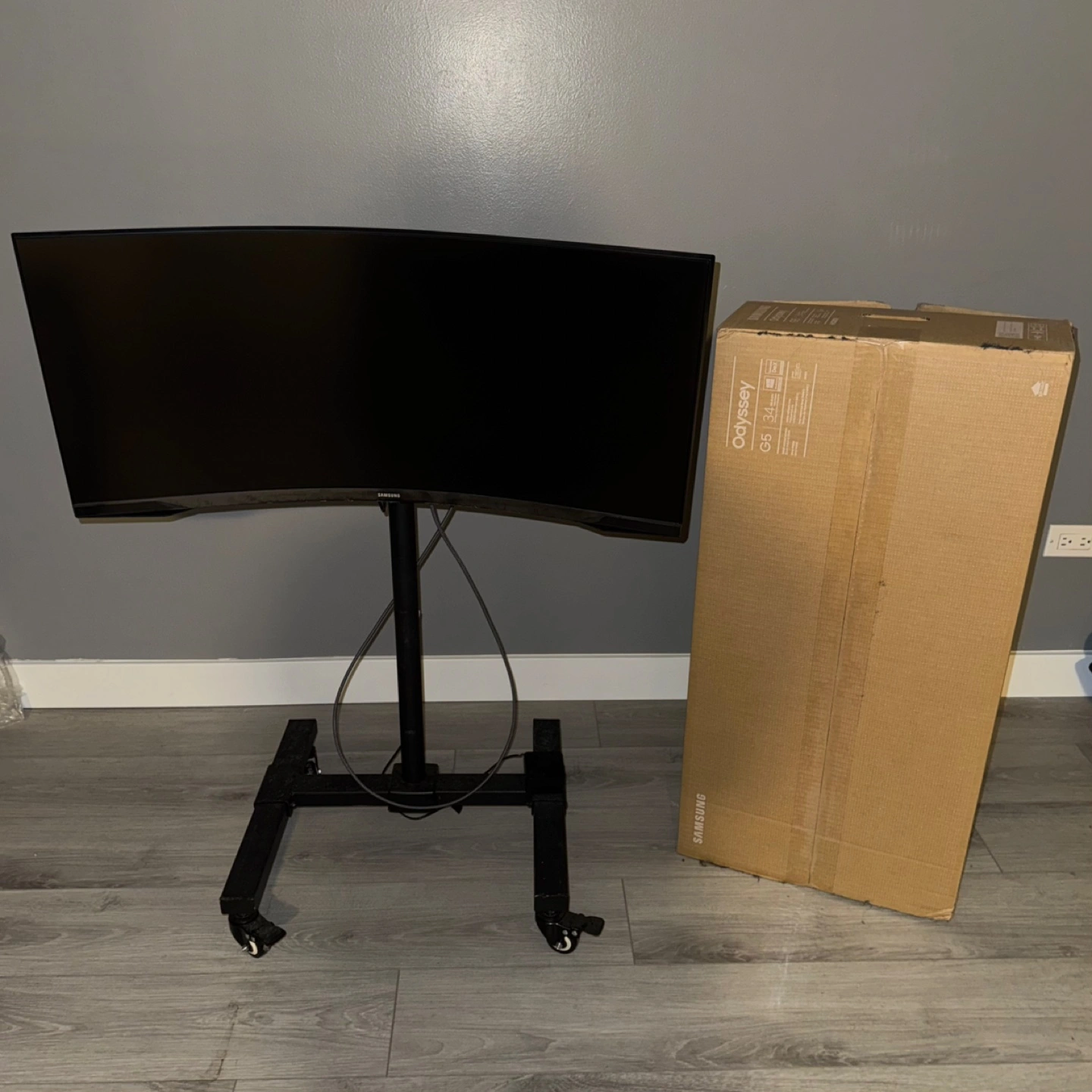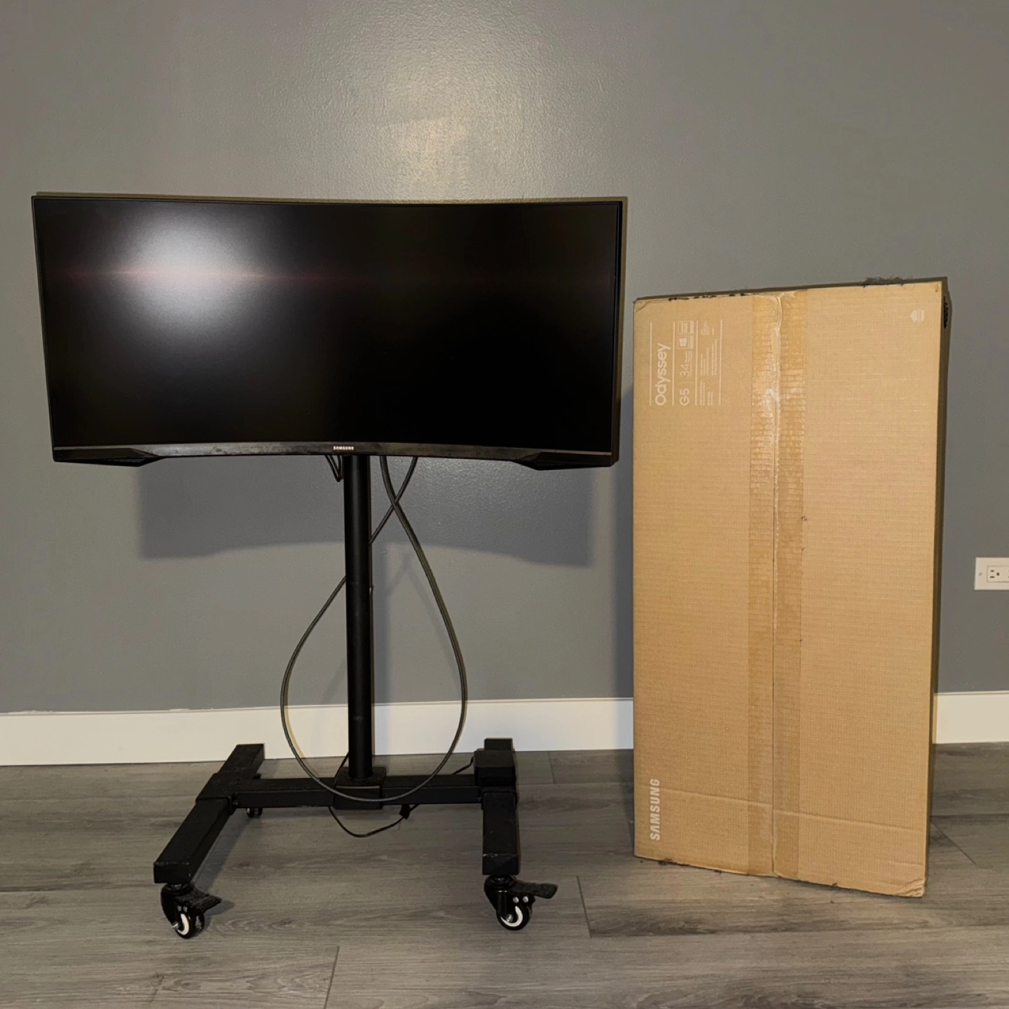 Includes original box with original stand (unused) & an extra stand with wheels (new costs $80)