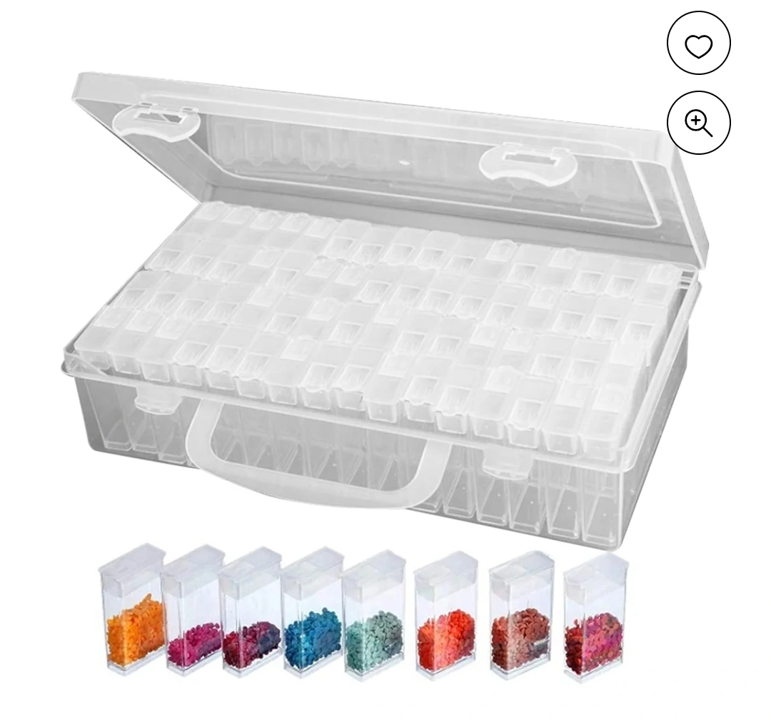 Clear plastic storage box. Perfect for organizing small items. Features 60 individual compartments and a convenient carrying handle. Multiple sizes available.
