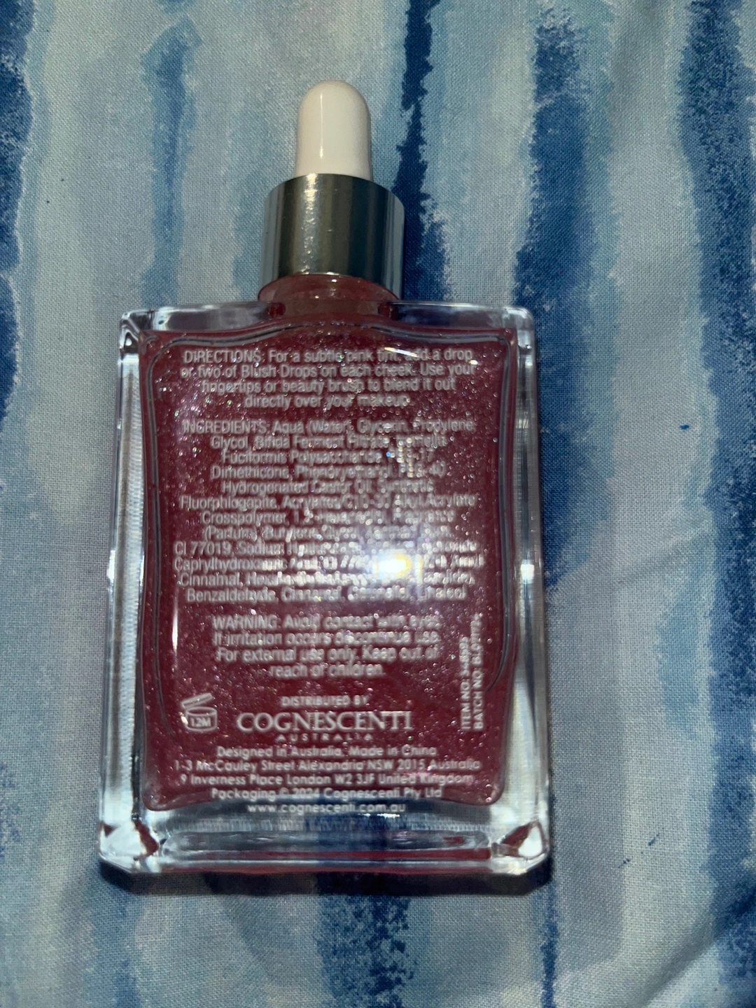 50ml blush drops. Shimmery pink liquid. Comes in a glass bottle with a dropper. Never Used pick up please