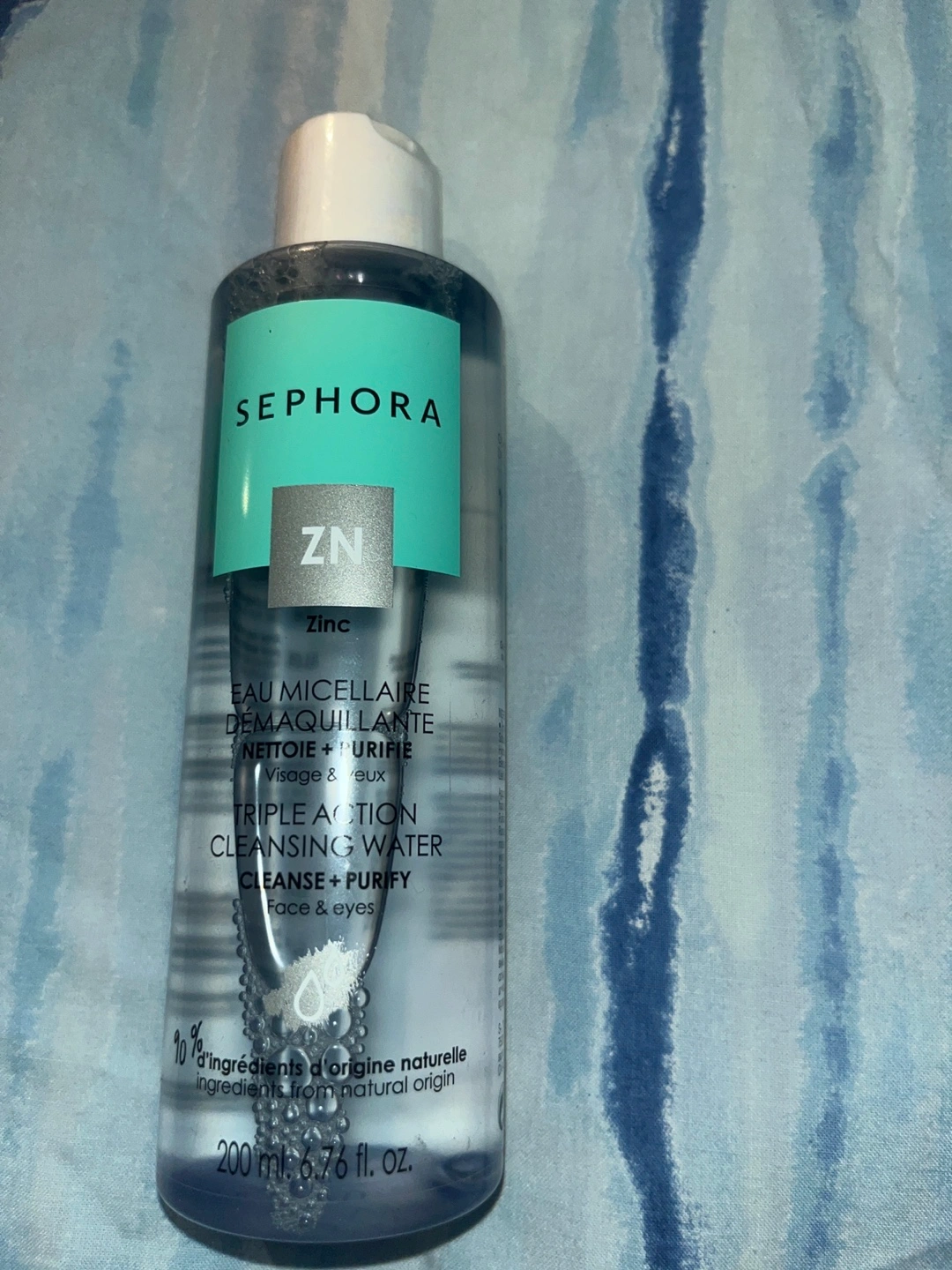 200ml bottle of Sephora Collection Zinc Triple Action Cleansing Water. Cleanses and purifies face and eyes. Suitable for sensitive skin. Pick up please want gone asap