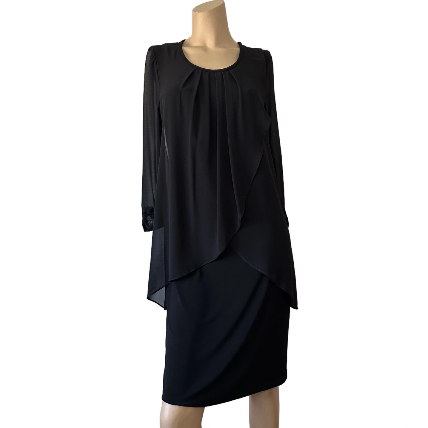 Joseph Ribkoff Black Layered Dress With Tiered Overlay Size 8