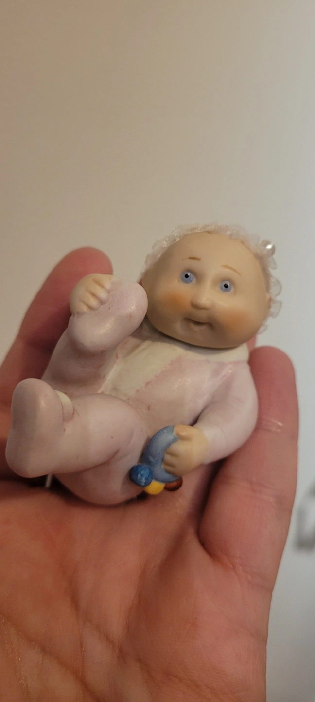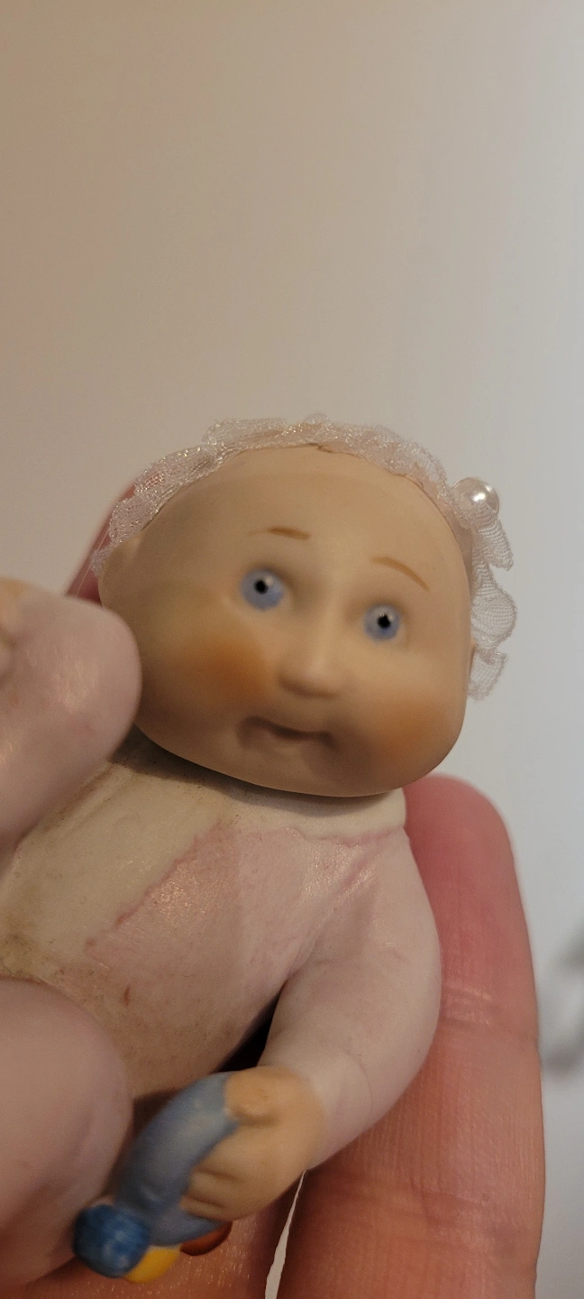 1000+Adorable vintage porcelain Cabbage Patch Kid figurine. Baby is wearing a pink outfit and holding a rattle. 1984 edition. Yonge and Finch area
