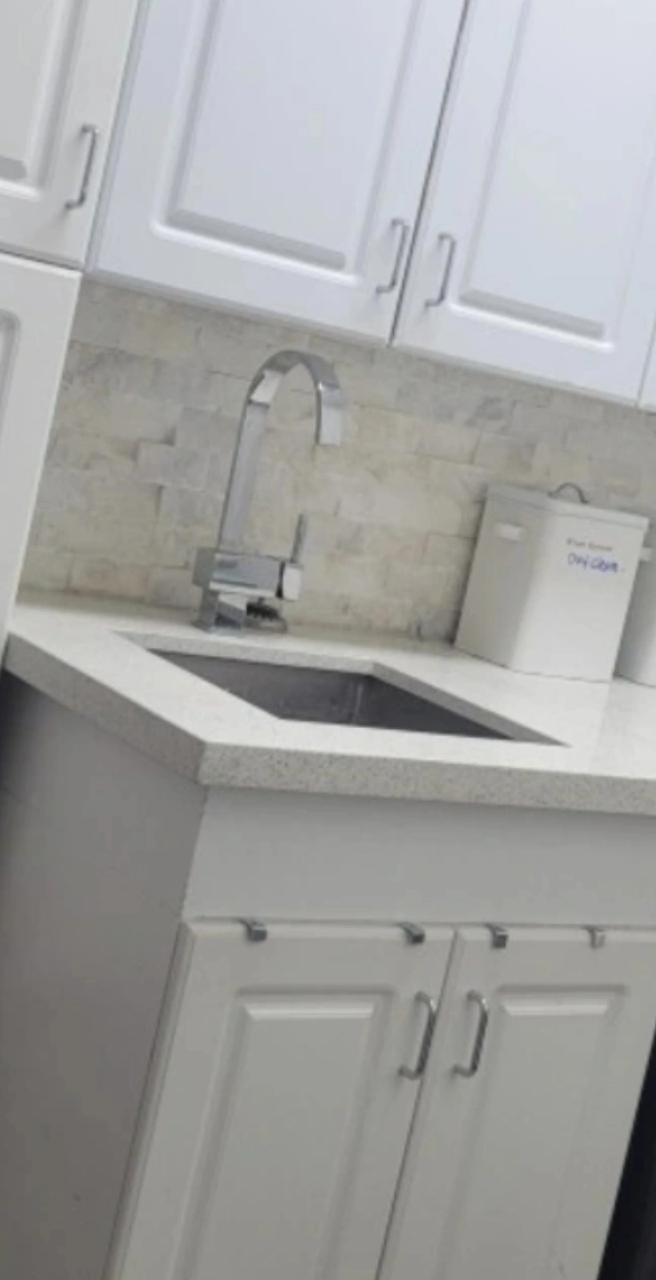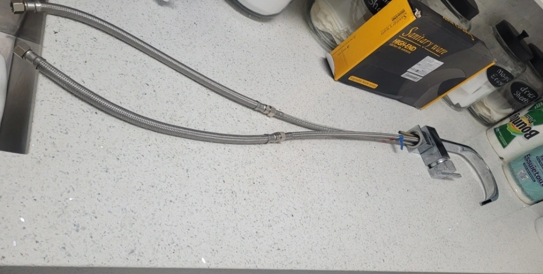 chrome faucet. Single handle design. Includes flexible supply lines. Good for a small coffee bar area.I used mine in my laundry room abraham to have maximum counter space and cabinet space