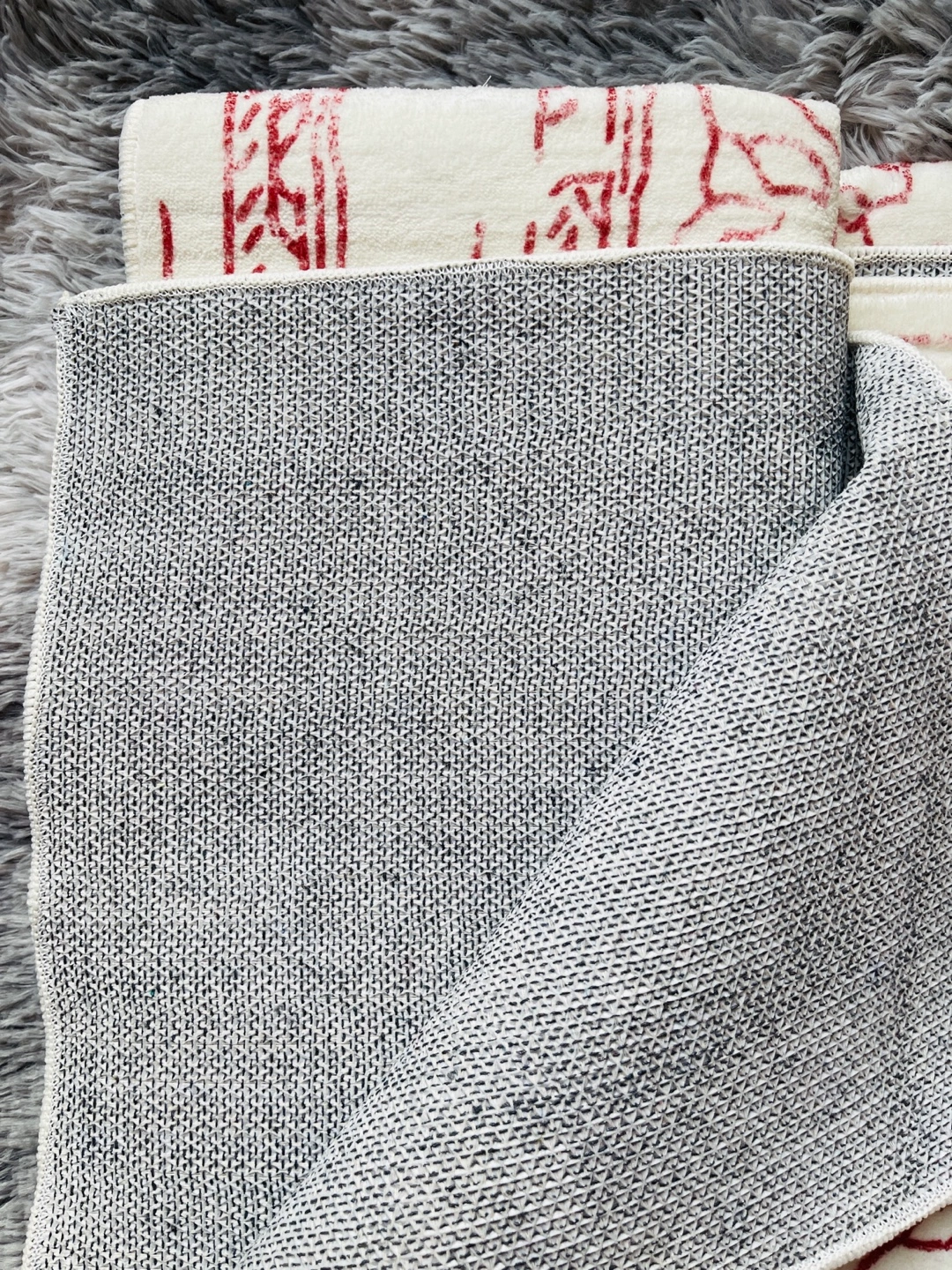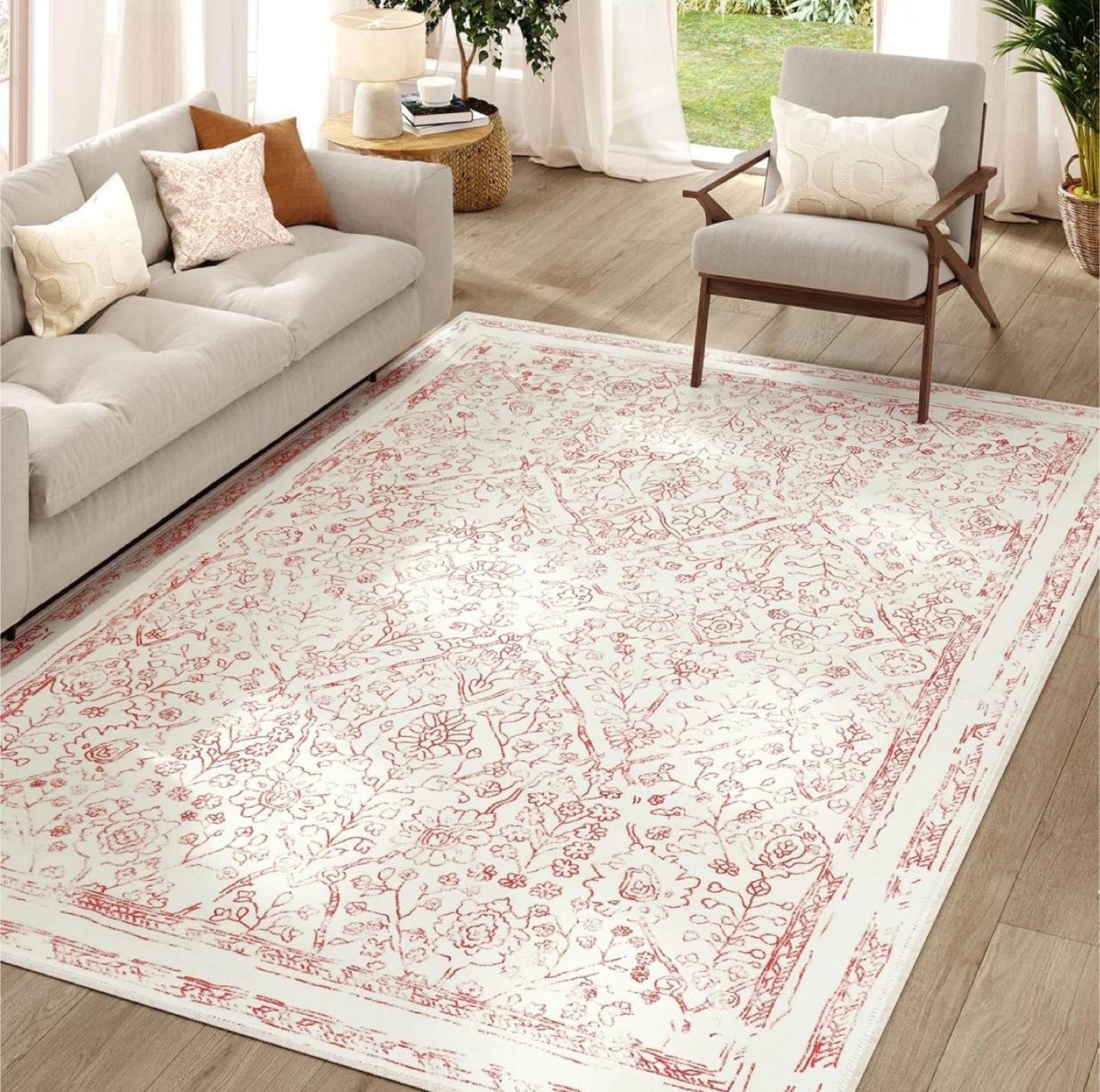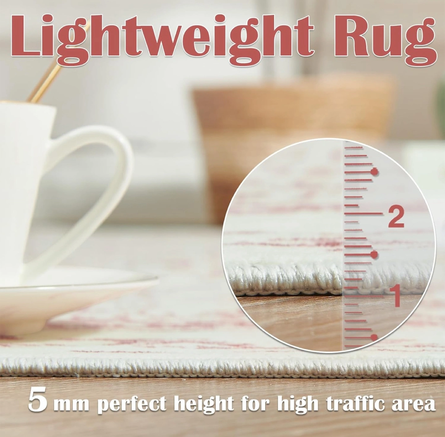 908BRAND NEW JINCHAN Indoor Area Rug Size: 5x 7 ft Colour: Red on Cream Material: Faux Wool Ultra soft surface - feels soft, smooth and velvety. Machine washable, vacuum or robot clean. Foldable,Non Slip,Stain Resistant,Lightweight Retails $99+++ Pick up near Yonge Eglinton Subway