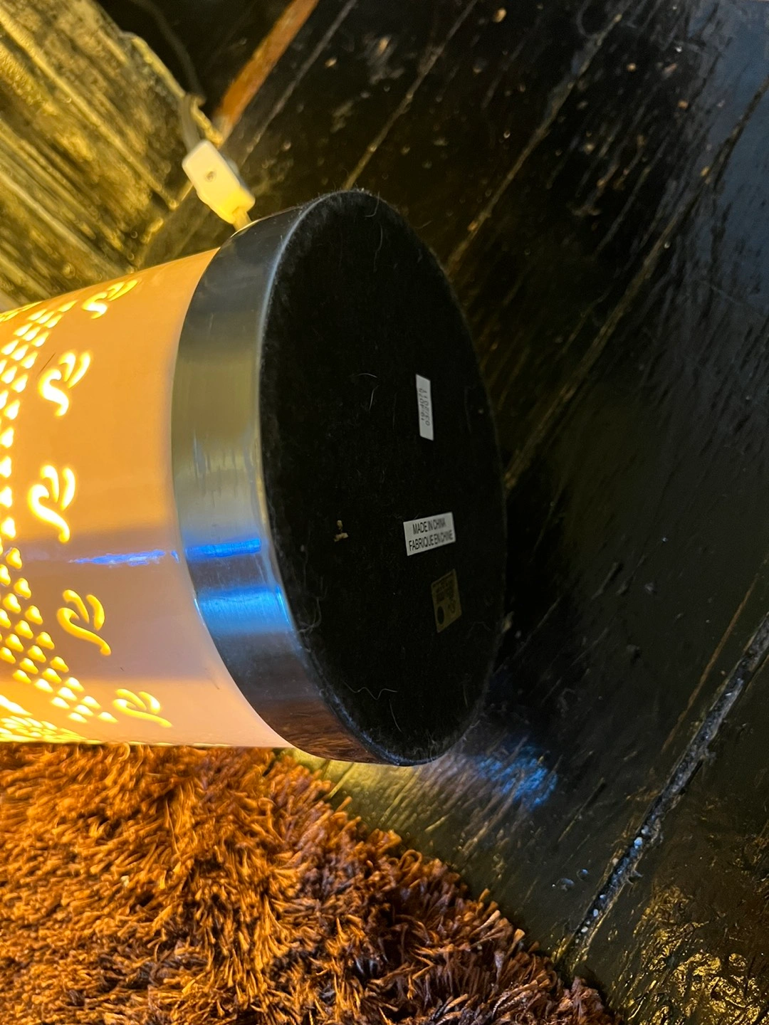 These lamps feature a gorgeous white lace cut out design that adds a touch of elegance and sophistication to any room. The stainless steel base provides stability and durability, while the on/off switch located on the chord allows for easy and convenient use.