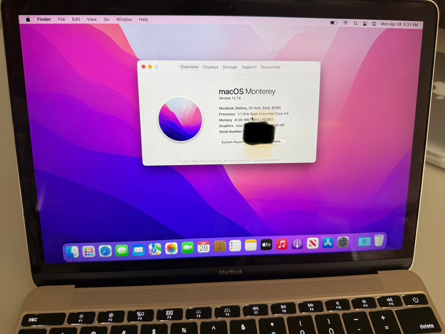 Selling my 12-inch Retina display MacBook in gold aluminum, running macOS Monterey. It features: