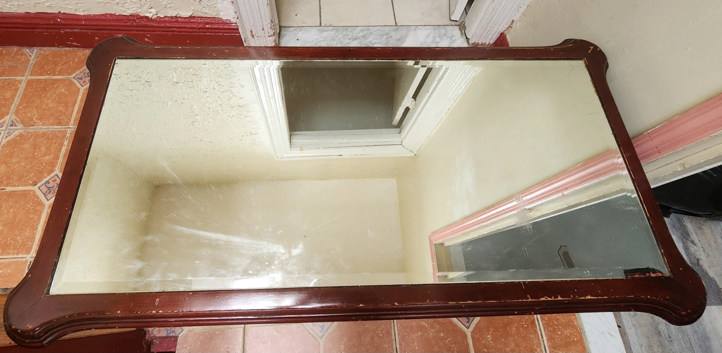 Vintage Dark Wood Mahogany Coffee Table & Mirror Top