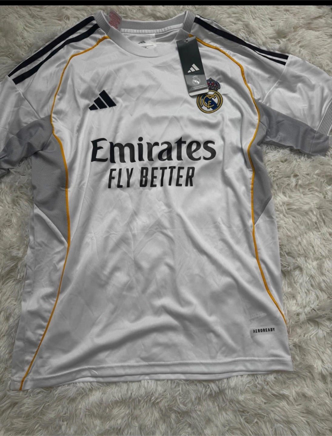 Buy & SellAdidas Real Madrid Training JerseyAdidas Real Madrid Training Jersey$45Men's Real Madrid training jersey. White with grey and black accents. Emirates Fly Better sponsor logo. Adidas AeroReady technology. New with tags.ConditionNewSizeM BrandAdidas1 chats·0 favorites·38 viewsSELLERSabrinaIdagrove Gate686 reviewsWHERE TO MEETCheck Location