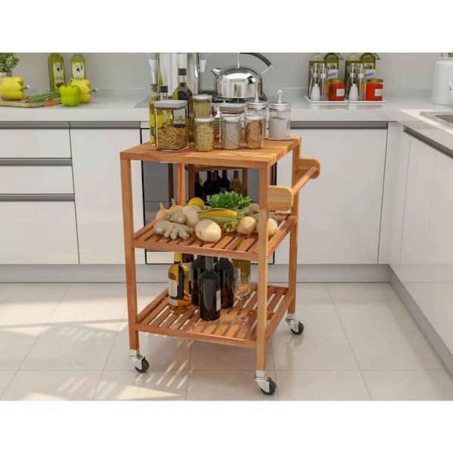 3 Tier Solid Acacia Kitchen Cart, Golden Teak