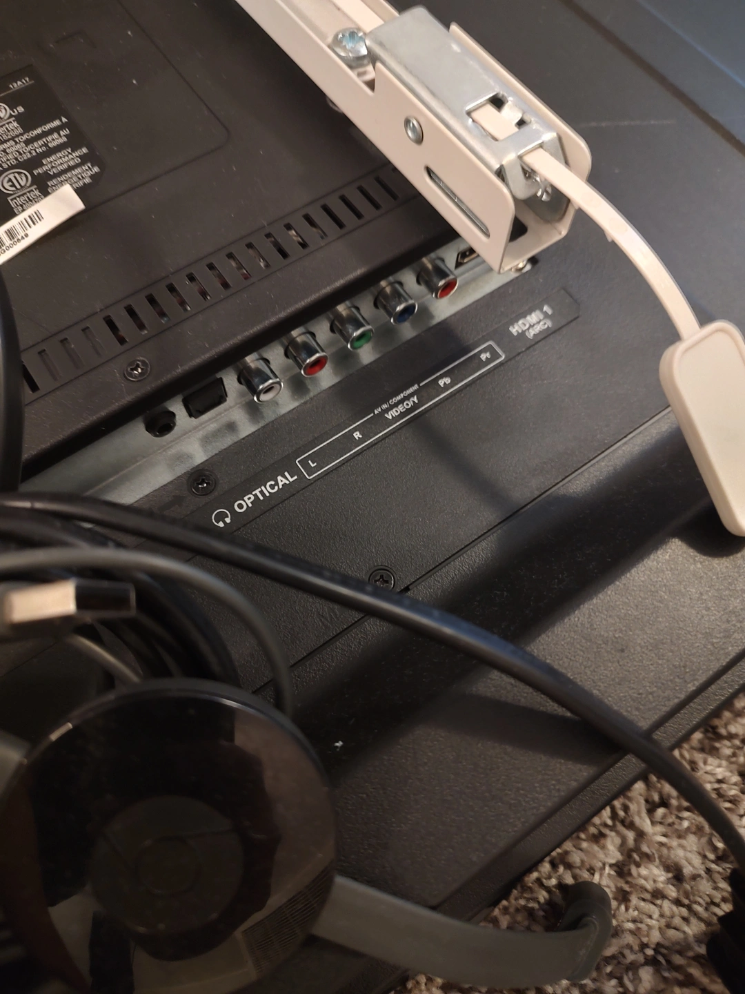 fluid TV with remote, Google Chromecast, hooks for wall mount