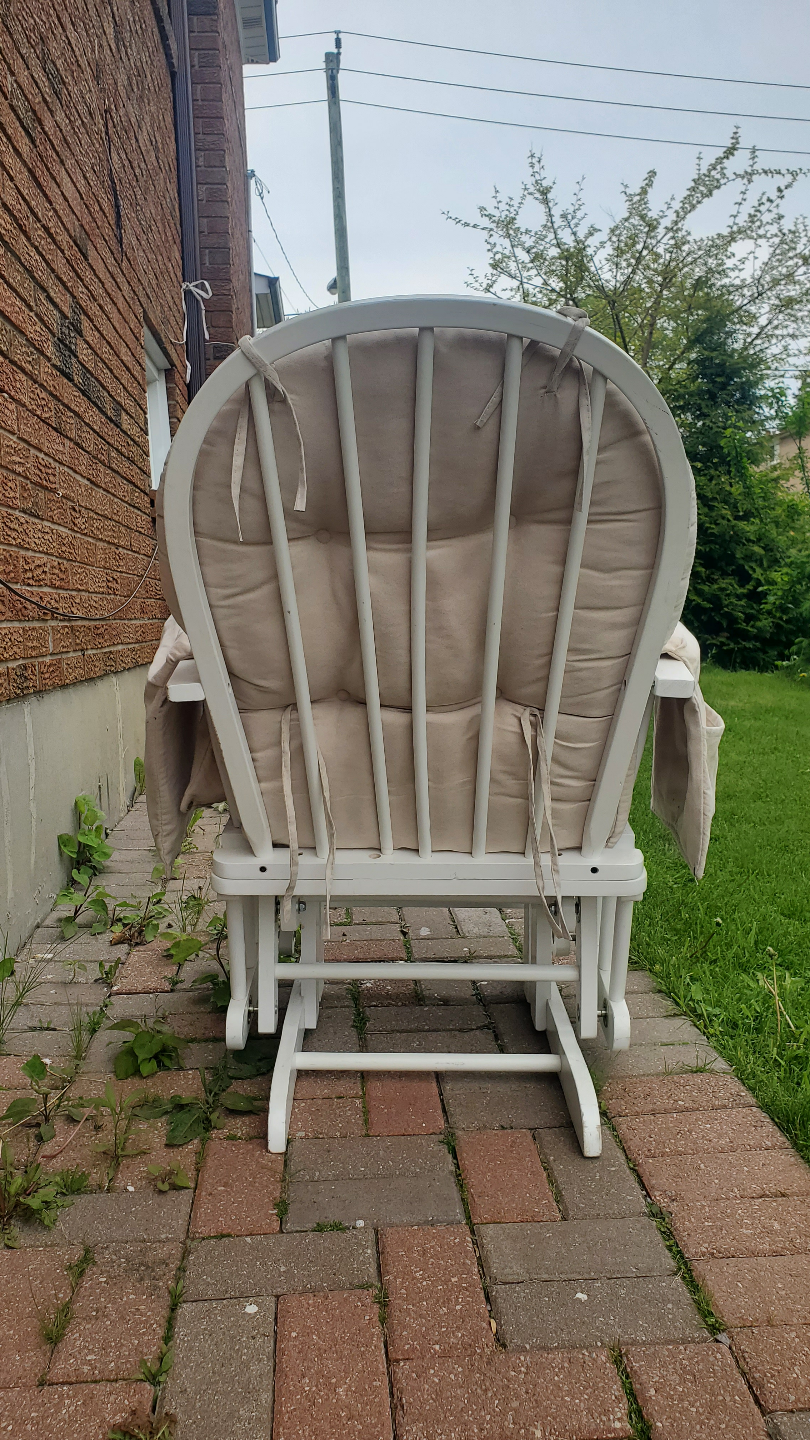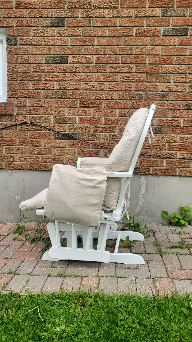 1 / 41 / 4Buy & SellWhite Wooden Glider Rocking Chair with Beige CushionsWhite Wooden Glider Rocking Chair with Beige Cushions$40Comfortable glider rocking chair. White wooden frame. Beige fabric cushions. Two side pockets. Suitable for nursery or living room.ConditionGoodWHERE TO MEETCheck LocationView MapSELLERverifiedZabi JannBirchmount881 review2 chats·6 favorites·99 viewsSEND CHAT TO SELLERHi Zabi Jann! I’m interested in your listing.Hi Zabi Jann! I’m interested in your listing.Get the Karrot app to chatSign In to chat