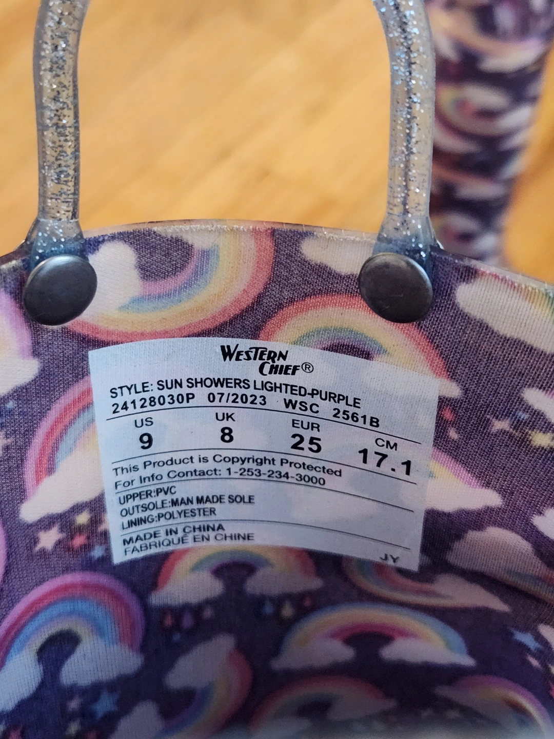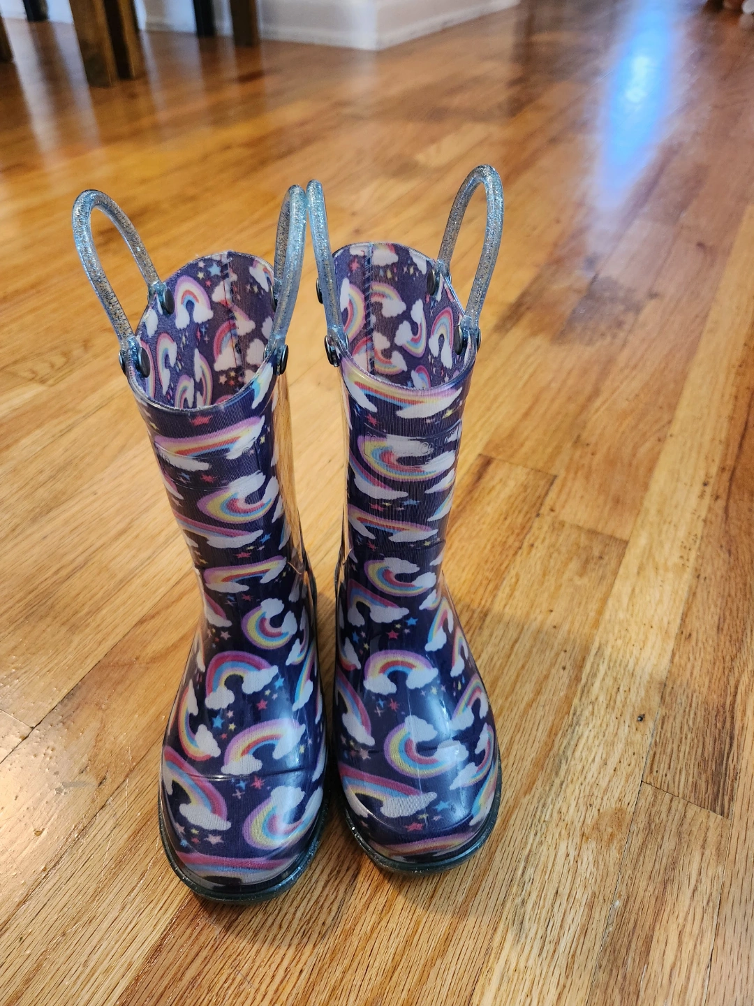 150Adorable rain boots. Rainbow and star print. Clear PVC upper. Size 9 US. Gently used.