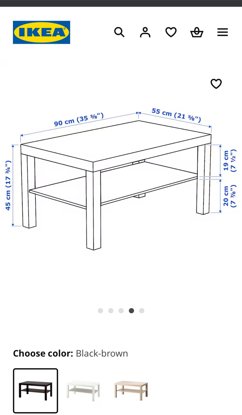 1 / 31 / 3Buy & SellIKEA Lack Coffee Table - BlackIKEA Lack Coffee Table - Black$25Black-brown coffee table. Features a lower shelf. Good condition. Dimensions: 90cm x 55cm x 45cm.ConditionLike newWHERE TO MEETCheck LocationView MapSELLERverifiedElviraYonge Eglinton1175 reviews2 chats·2 favorites·53 viewsSEND CHAT TO SELLERHi Elvira! I’m interested in your listing.Hi Elvira! I’m interested in your listing.Get the Karrot app to chatSign In to chat