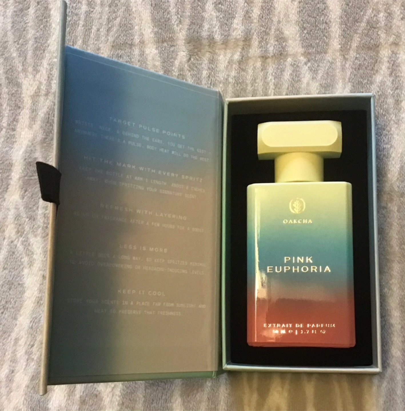 Brand new, unopened OAKCHA Pink Euphoria perfume. 50ml extrait de parfum. Candy collection. Long-lasting, cruelty-free, paraben & phthalate free. Smells like Skittles candy 🤩