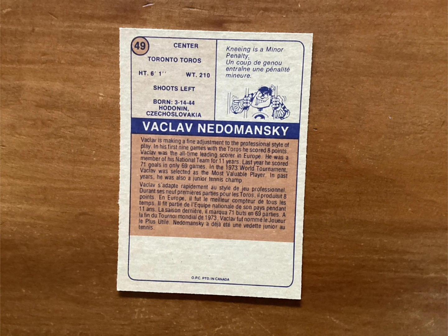 1974-75 O-PEE-CHEE VACLAV NEDOMANSKY Rookie Card #49