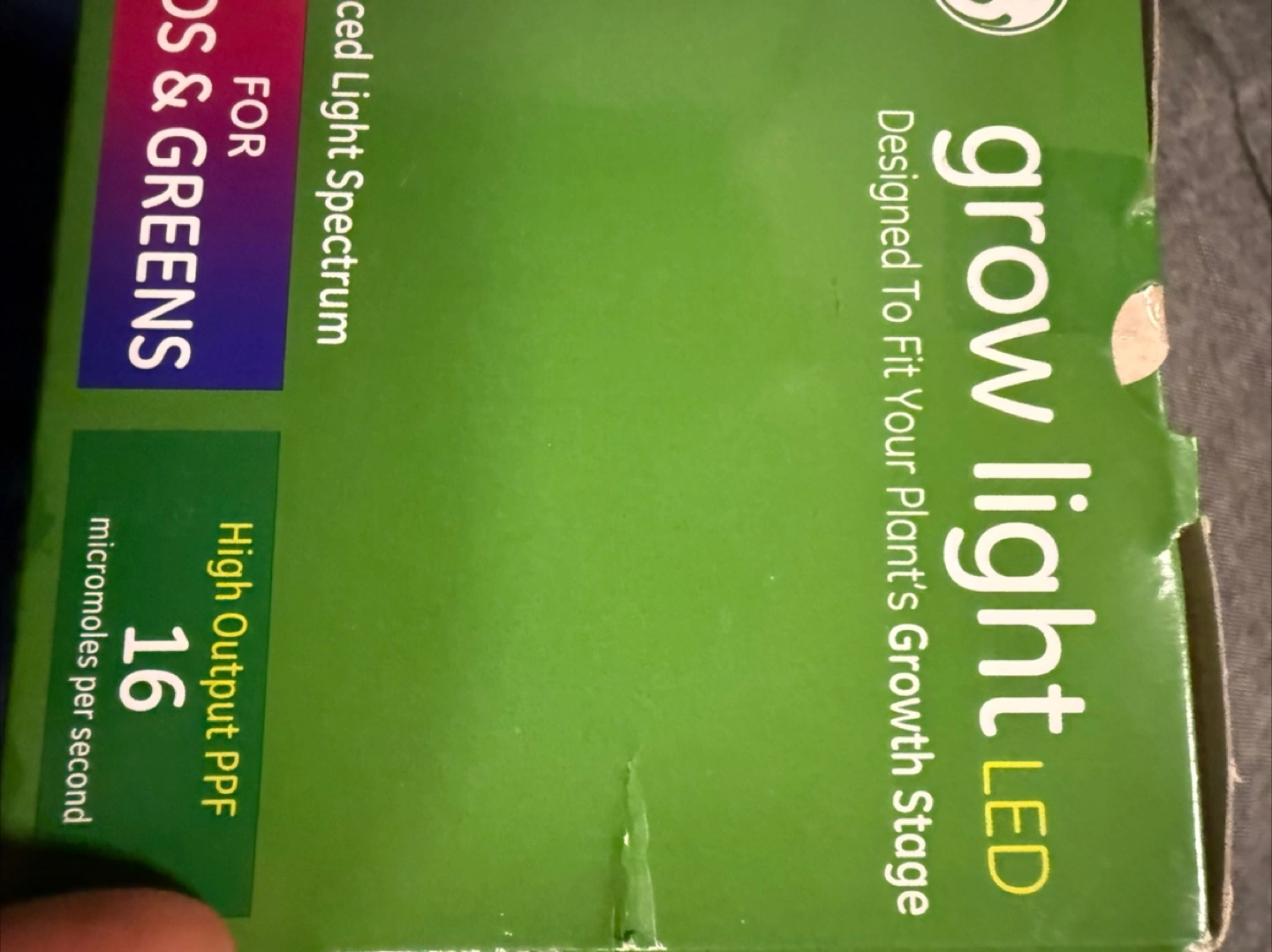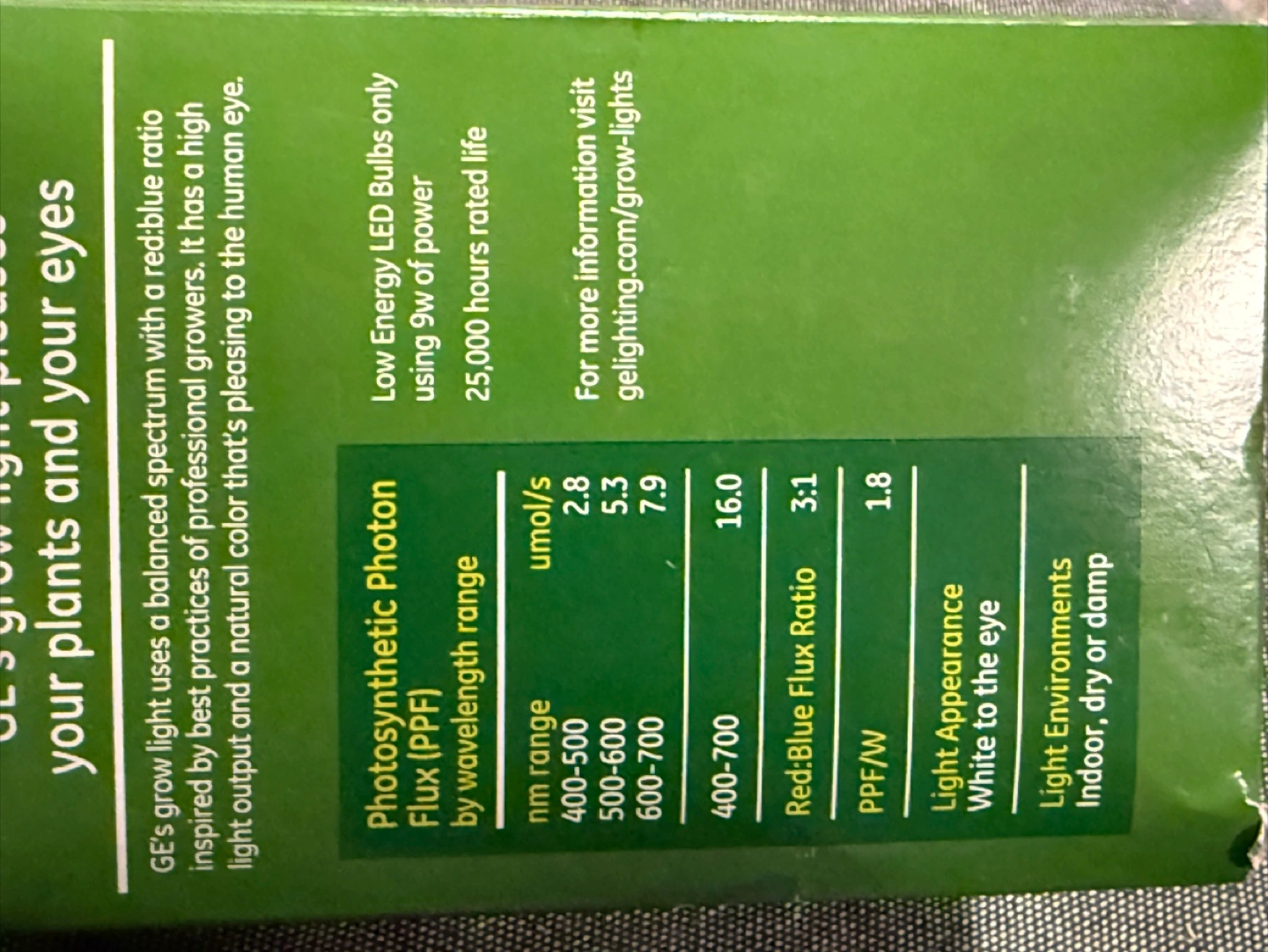 Help plants grow indoor 9W LED grow light bulb. BR30 medium base. Balanced spectrum. Designed to fit your plant's growth stage. High output PPF. Ideal for seeds and greens. Non-dimmable. Light appearance: white to the eye.