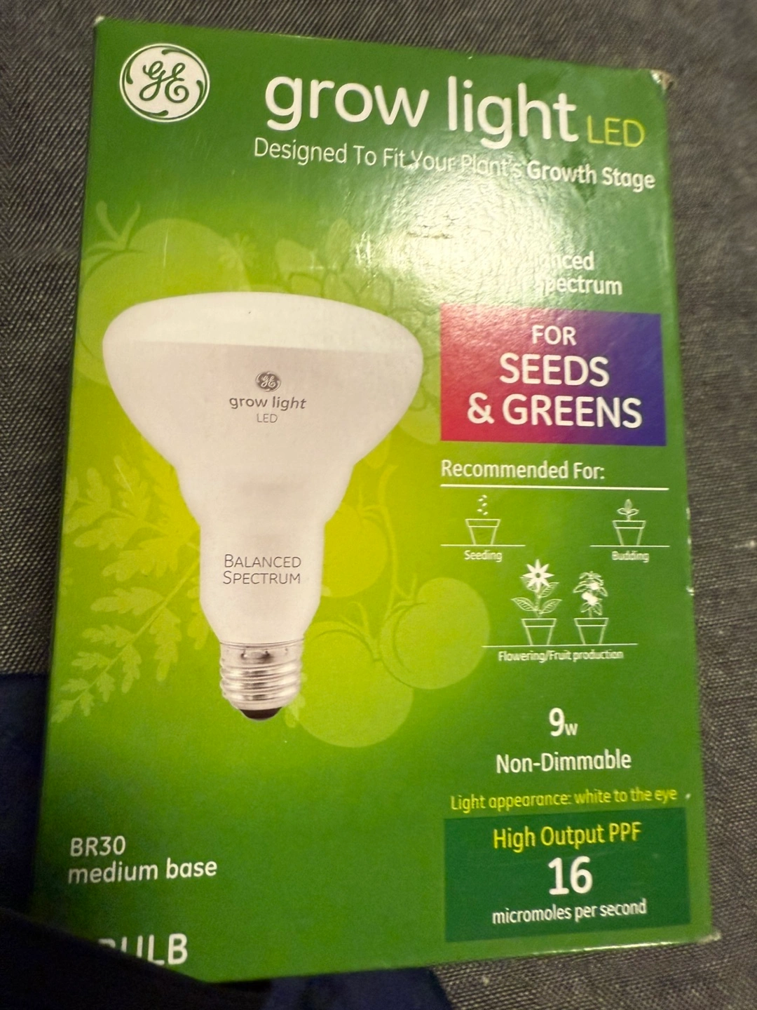 GE Grow Light LED Bulb - 9W - BR30 - For Seeds & Greens