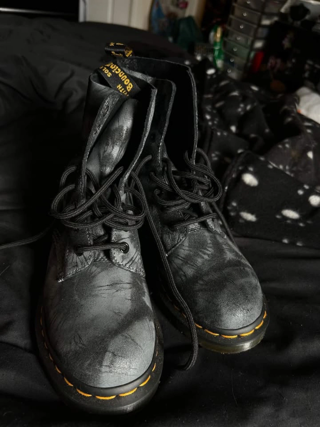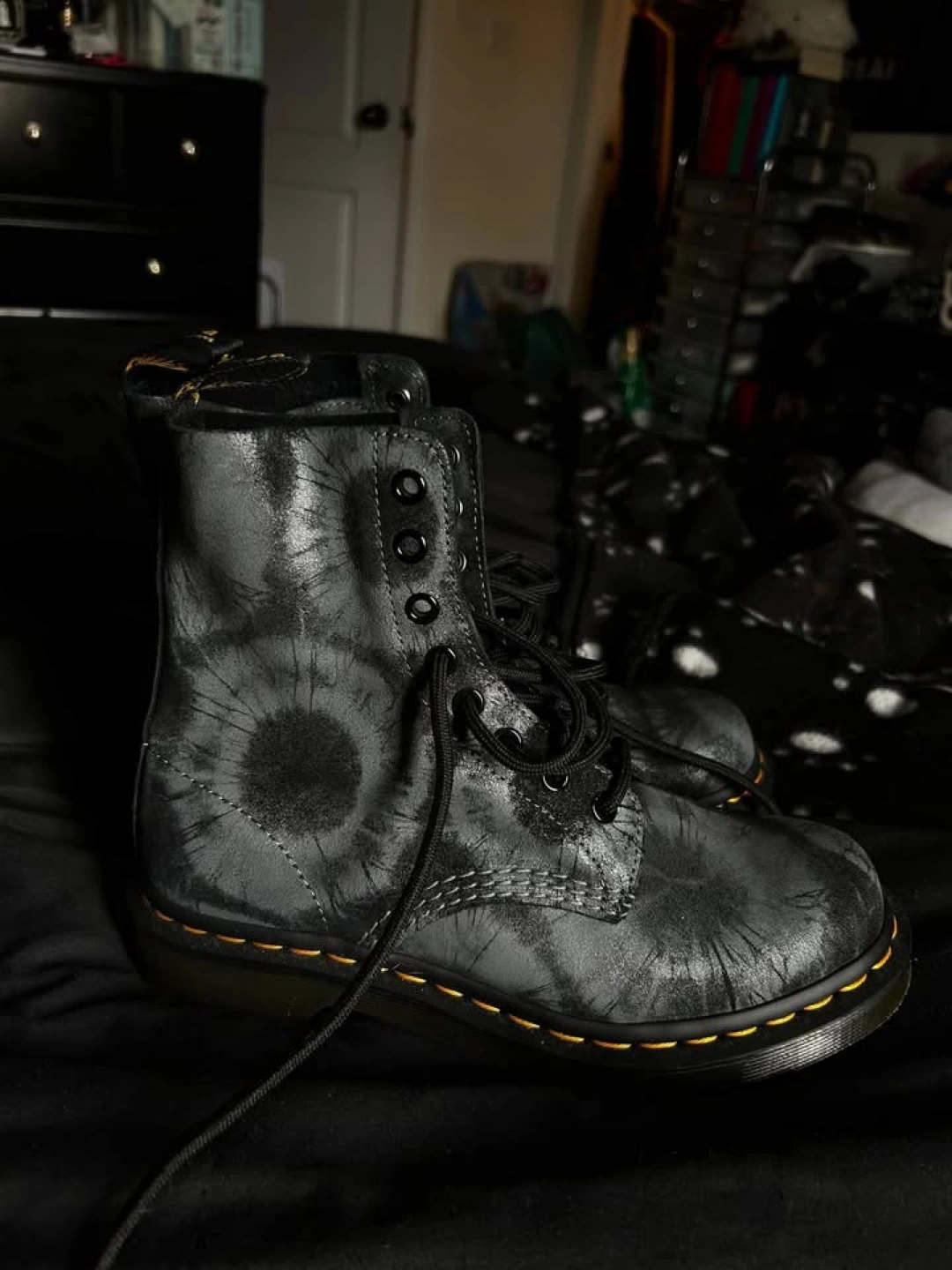 BRAND NEW Black tie-dye Dr. Martens 1460 Pascal boots. Lace-up style. Air-cushioned sole.