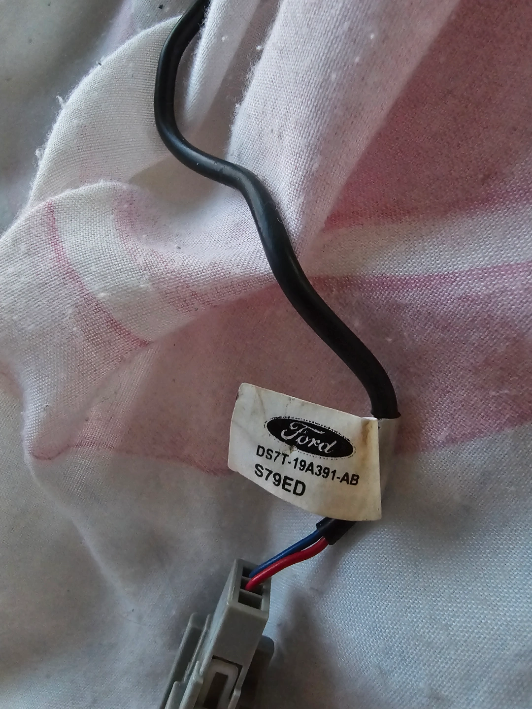 192Used Ford automotive wire harness. Part number DS7T-19A391-AB and S79ED. Features a black wire and grey connector. Sold as shown.