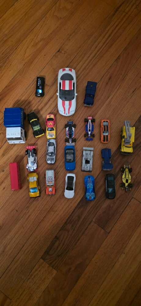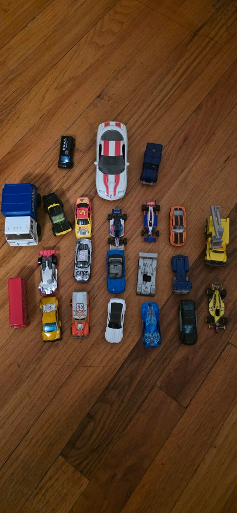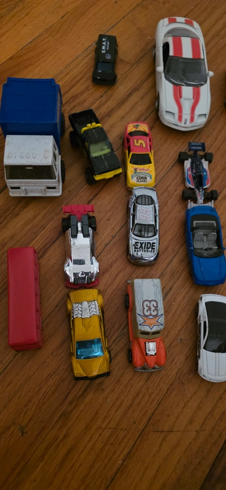 Collection of assorted miniature toy cars. Includes various makes and models. Great for collectors or kids.