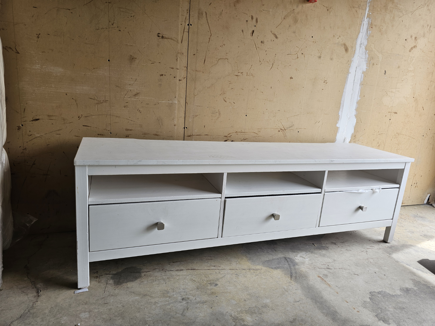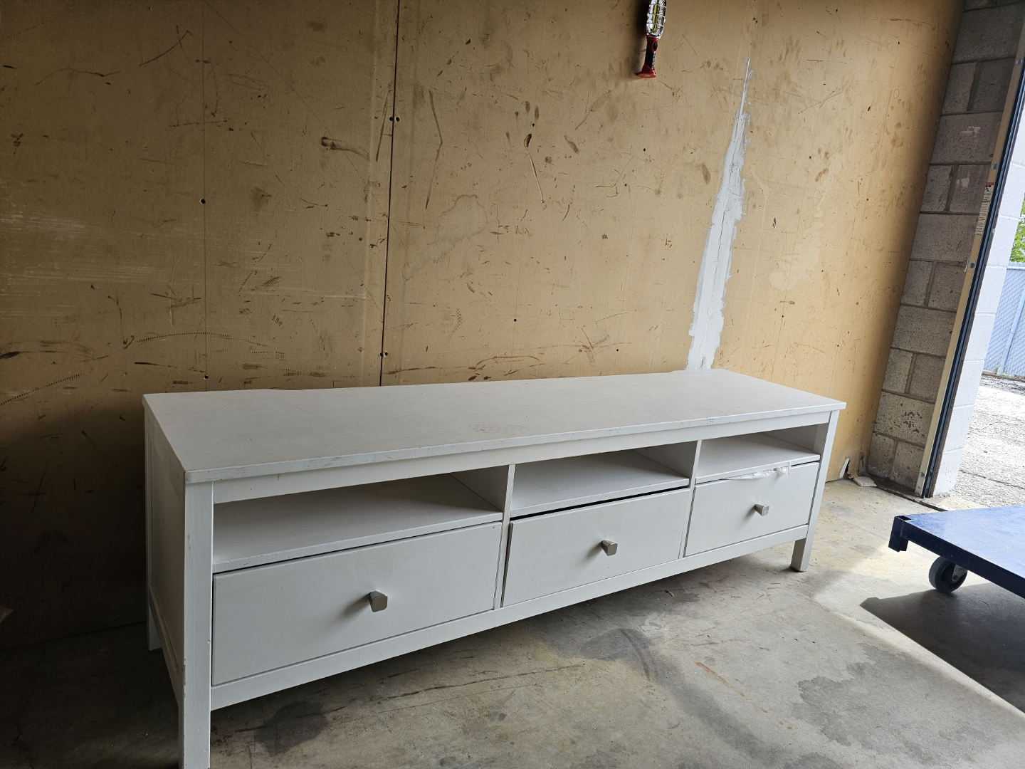Buy & SellWhite TV Stand with DrawersWhite TV Stand with Drawers$80Long white TV stand. Three drawers. Open shelving. Excellent condition. Solid wood.ConditionLike newWHERE TO MEETCheck LocationView MapSELLERManav125 Village Green Square322 reviews6 chats·0 favorites·101 viewsSEND CHAT TO SELLERHi Manav! I’m interested in your listing.Hi Manav! I’m interested in your listing.Get the Karrot app to chatSign In to chat