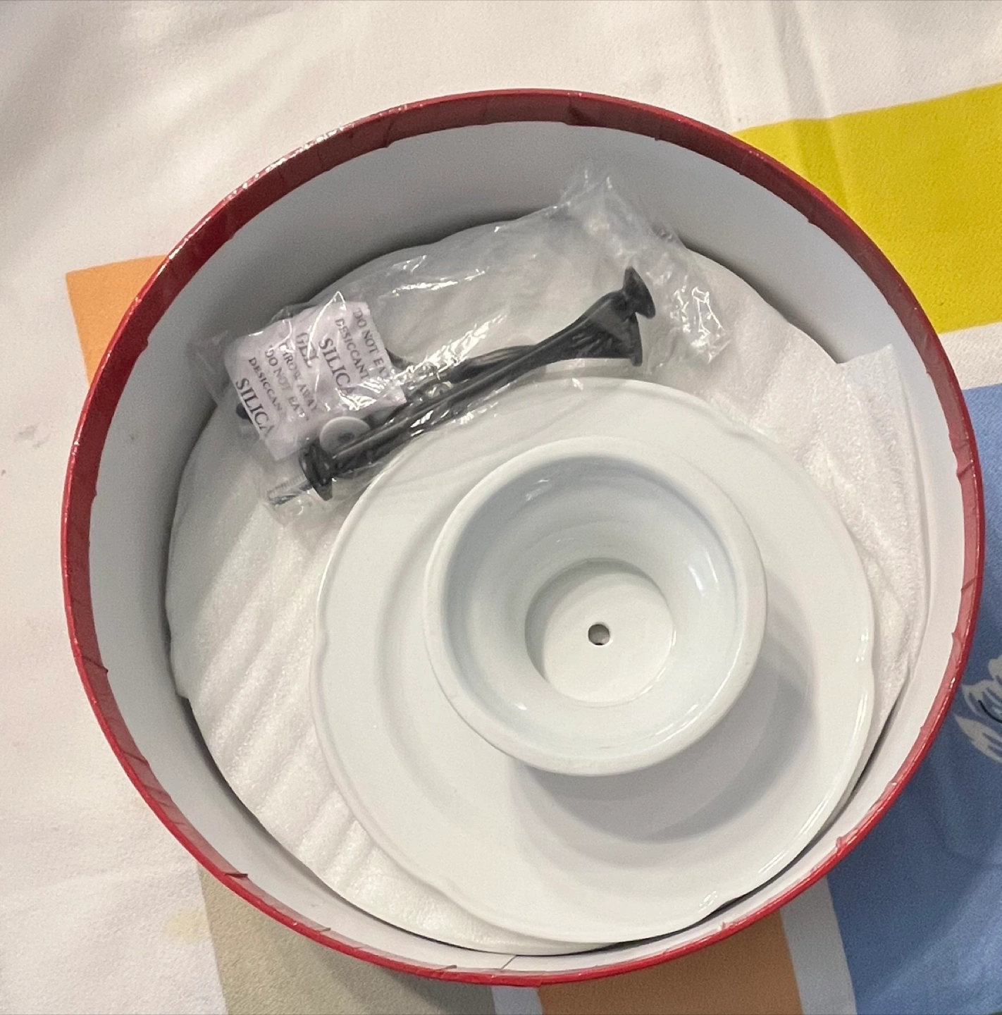 132New, unused, 2-tier cupcake stand. Elegant design. Includes all parts. Perfect for parties or special occasions. Assemble required.