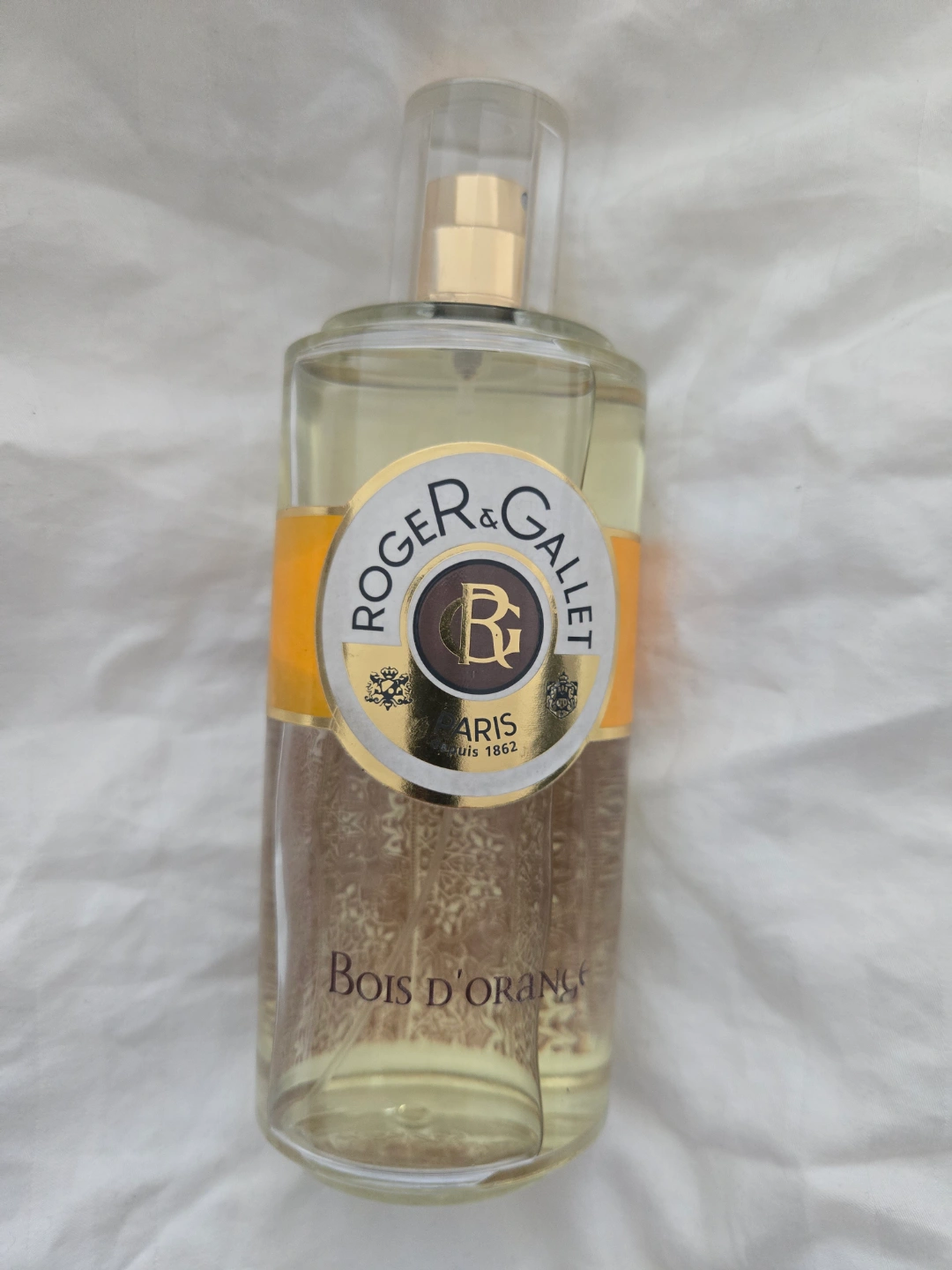 Roger & Gallet fragrance. Bois d'Orange scent. Eau de toilette. Glass bottle with gold accents. Excellent condition.