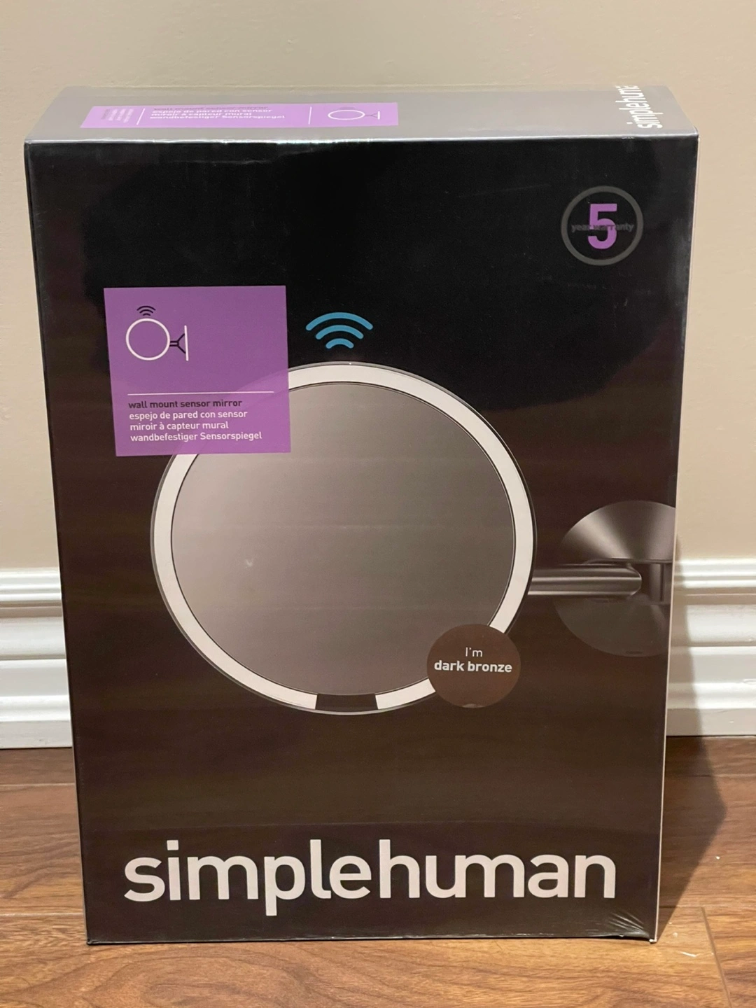 Simplehuman wall mount makeup mirror in dark bronze, BRAND NEW