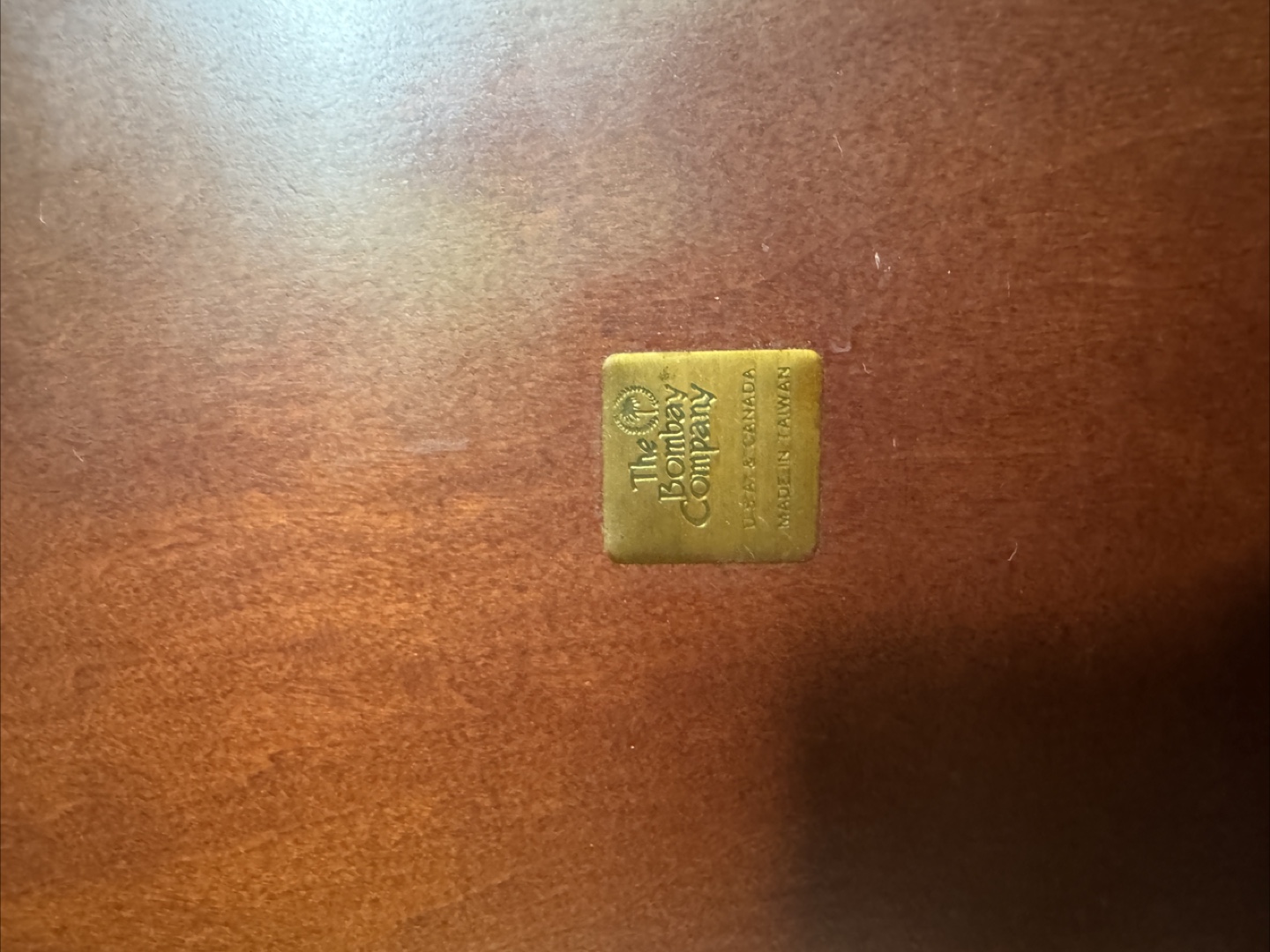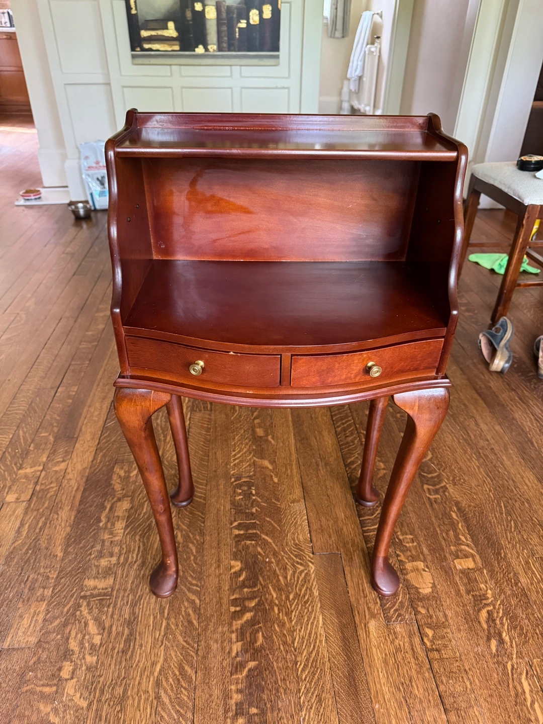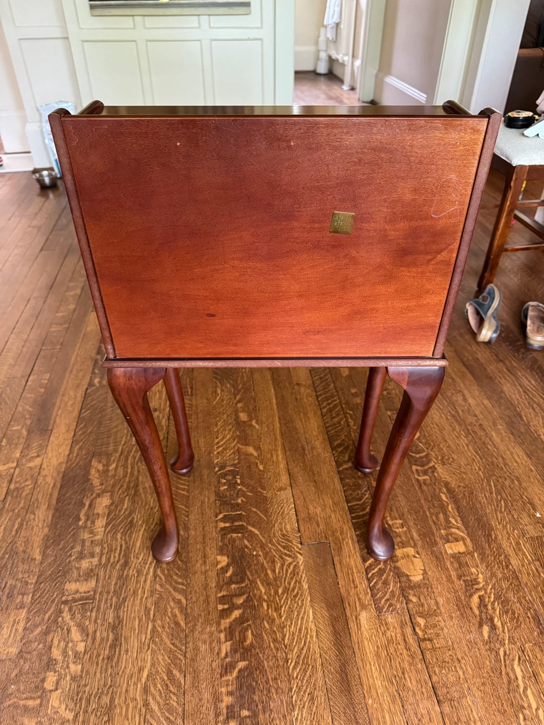 Used Bombay accent table / end table. Features two drawers and a small shelf. Cabriole legs.