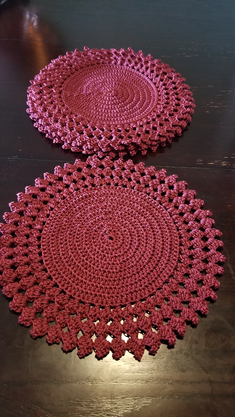 4 beautiful crochet placemats made with thick twine yarn easy to clean.