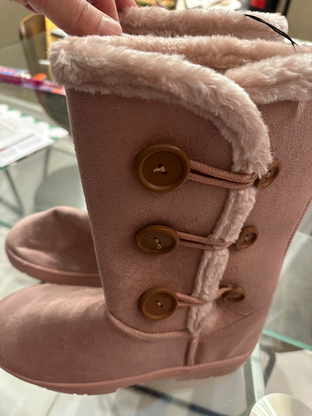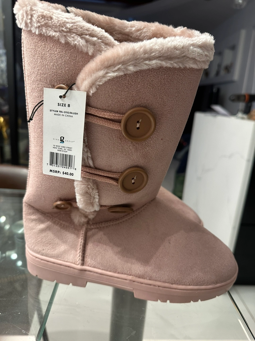 Rose faux suede boots. Faux fur lining. Button accents. Size 8. Made in China. Clean up my closet. New with tag.