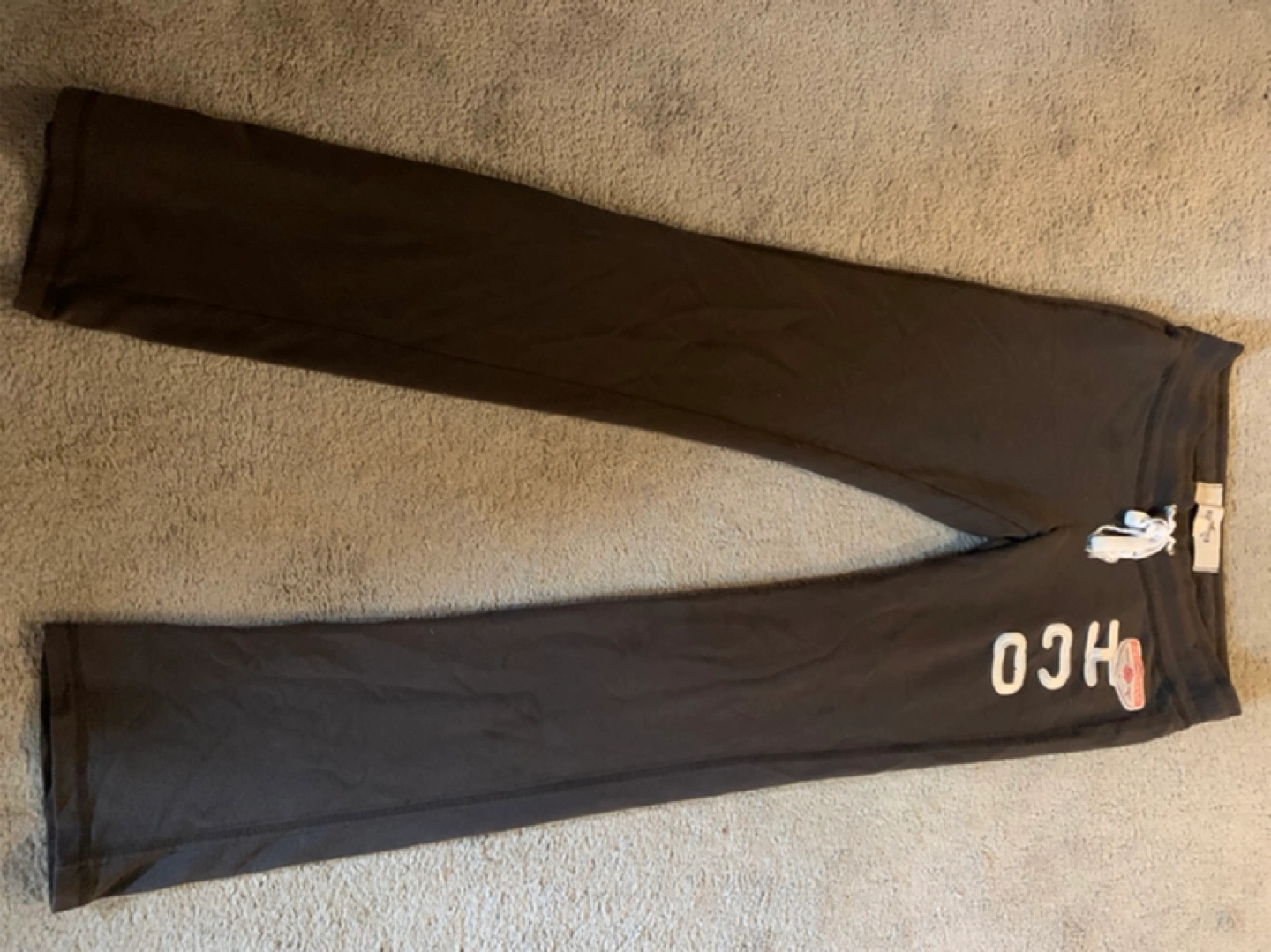 Bundle includes a pair of dark brown Hollister sweatpants, size small, and a dark grey American Eagle oversized sweater, size medium. Both items appear gently used.