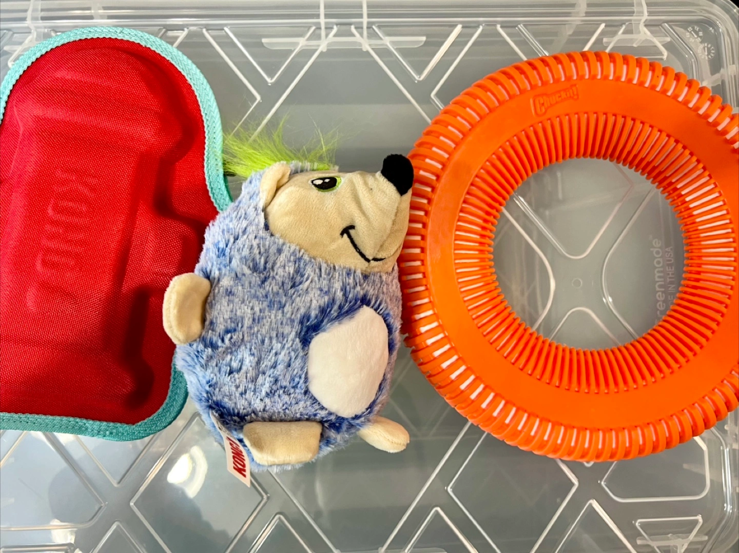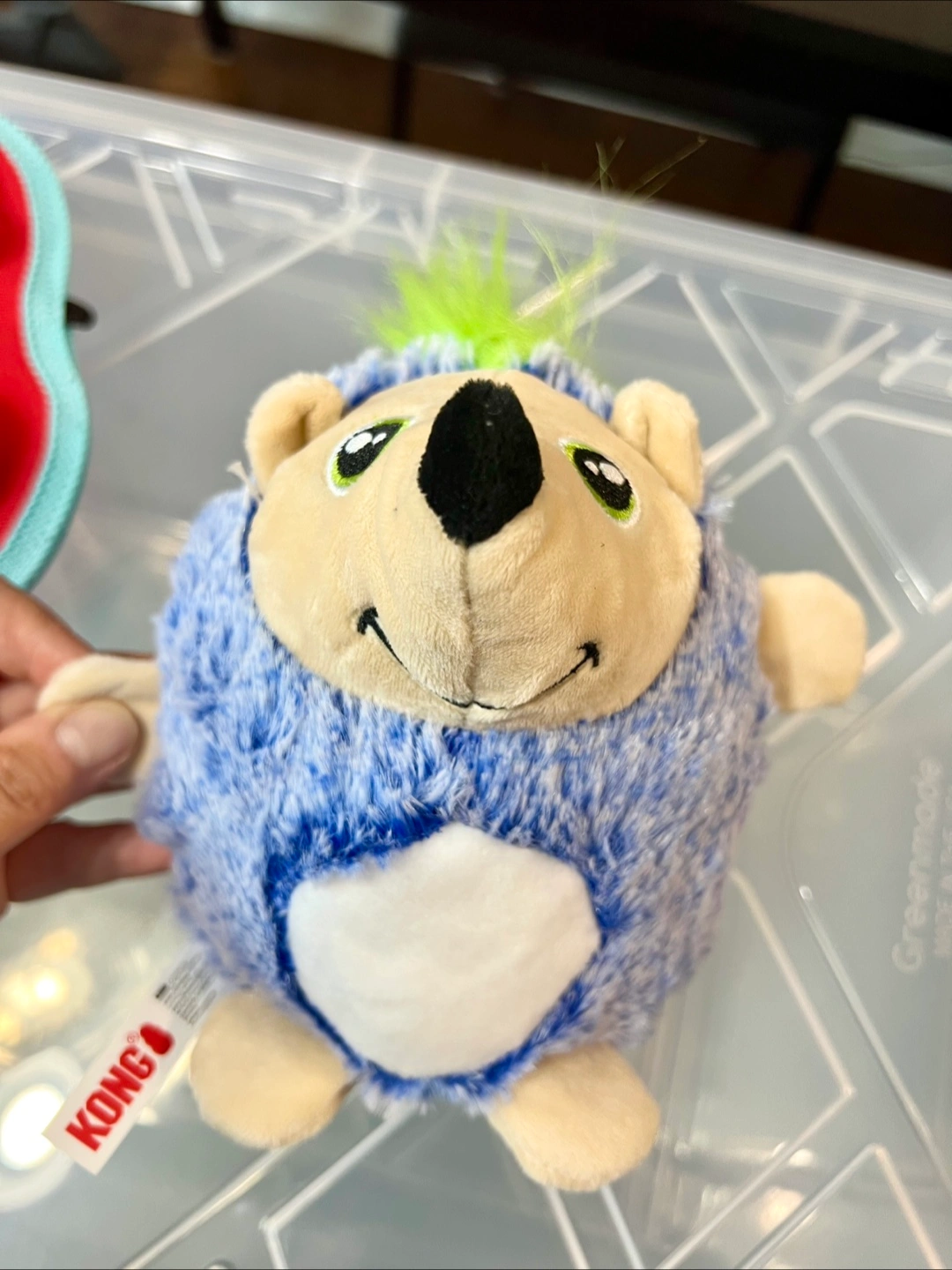 52Bundle includes: one orange Chuckit! ring, one Kong hedgehog plush toy, and one Kong fire hydrant plush toy. Great for fetch and playtime. brand new never used $5 each, $12 for all 3