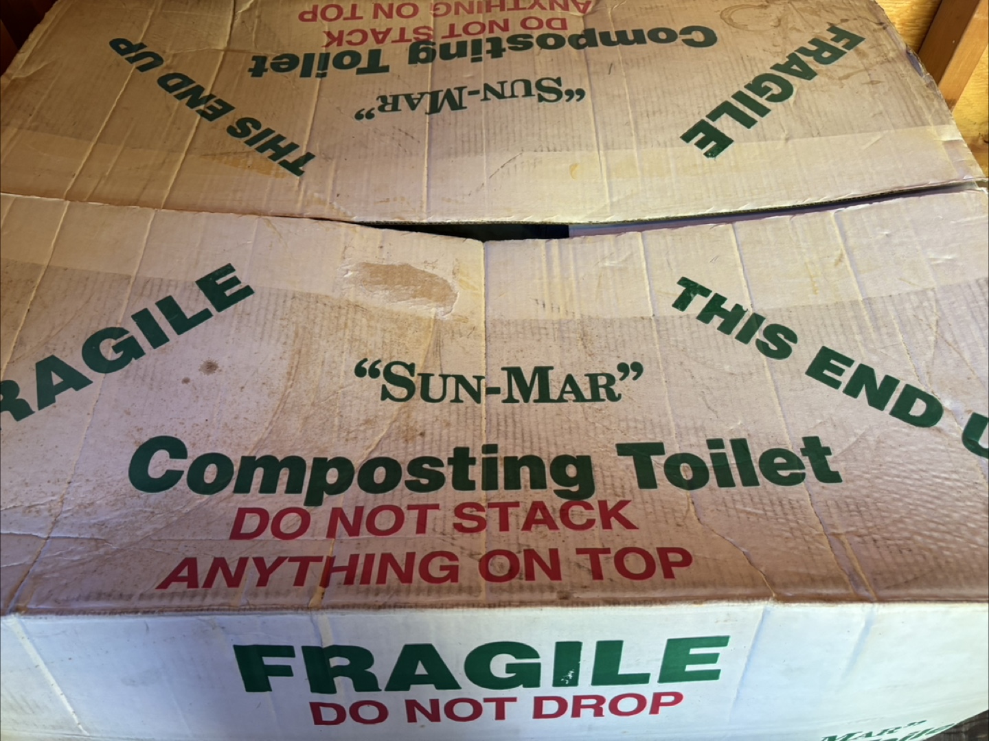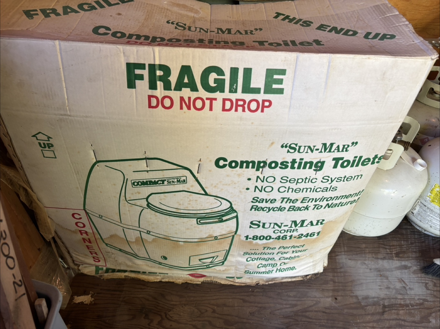 New Sun-Mar composting toilet. Complete in original packaging. No septic system, no chemicals. Recycle back to nature. Perfect solution for cottage, cabin, camp or summer home.
