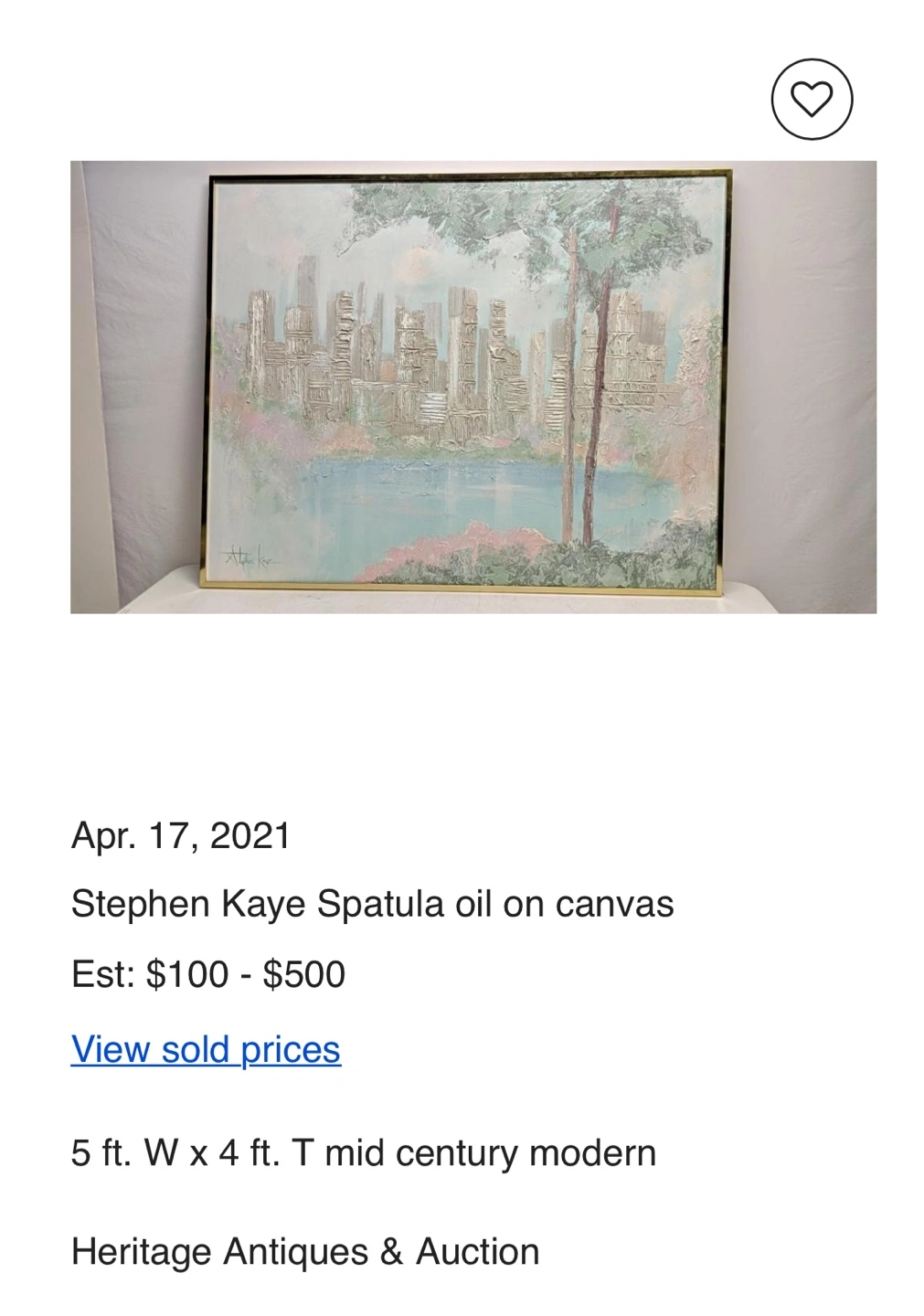 Large mid-century modern painting. Cityscape with water and tree. Oil on canvas. Beautiful colours.