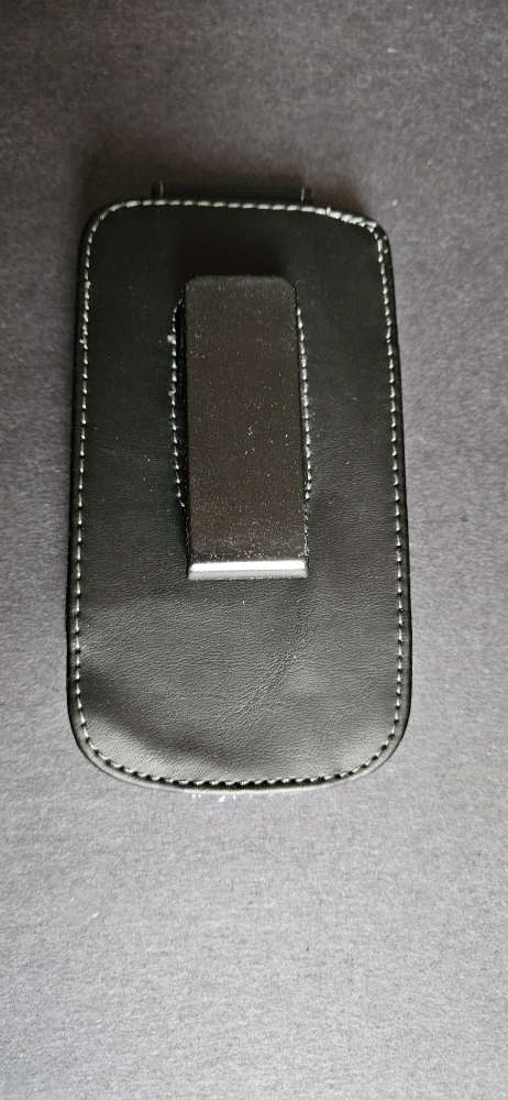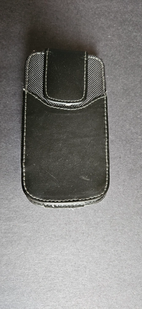Black leather cell phone case. Belt clip included. Good for older cell phones. Hardly used and like new.