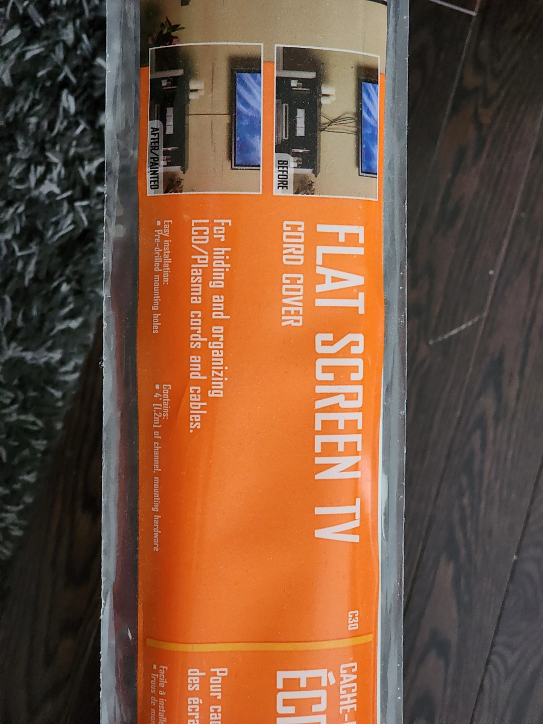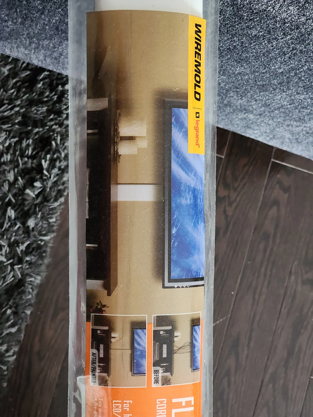 New, unopened Legrand Wiremold flat screen TV cord cover. Hides and organizes cords and cables. Easy installation. For LCD/Plasma mounts and cables. Includes mounting hardware.