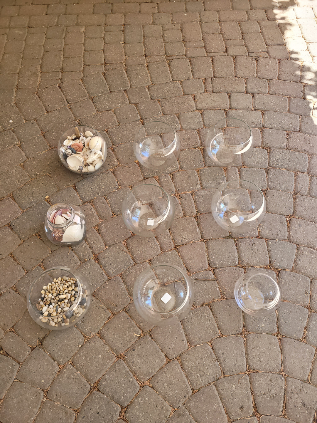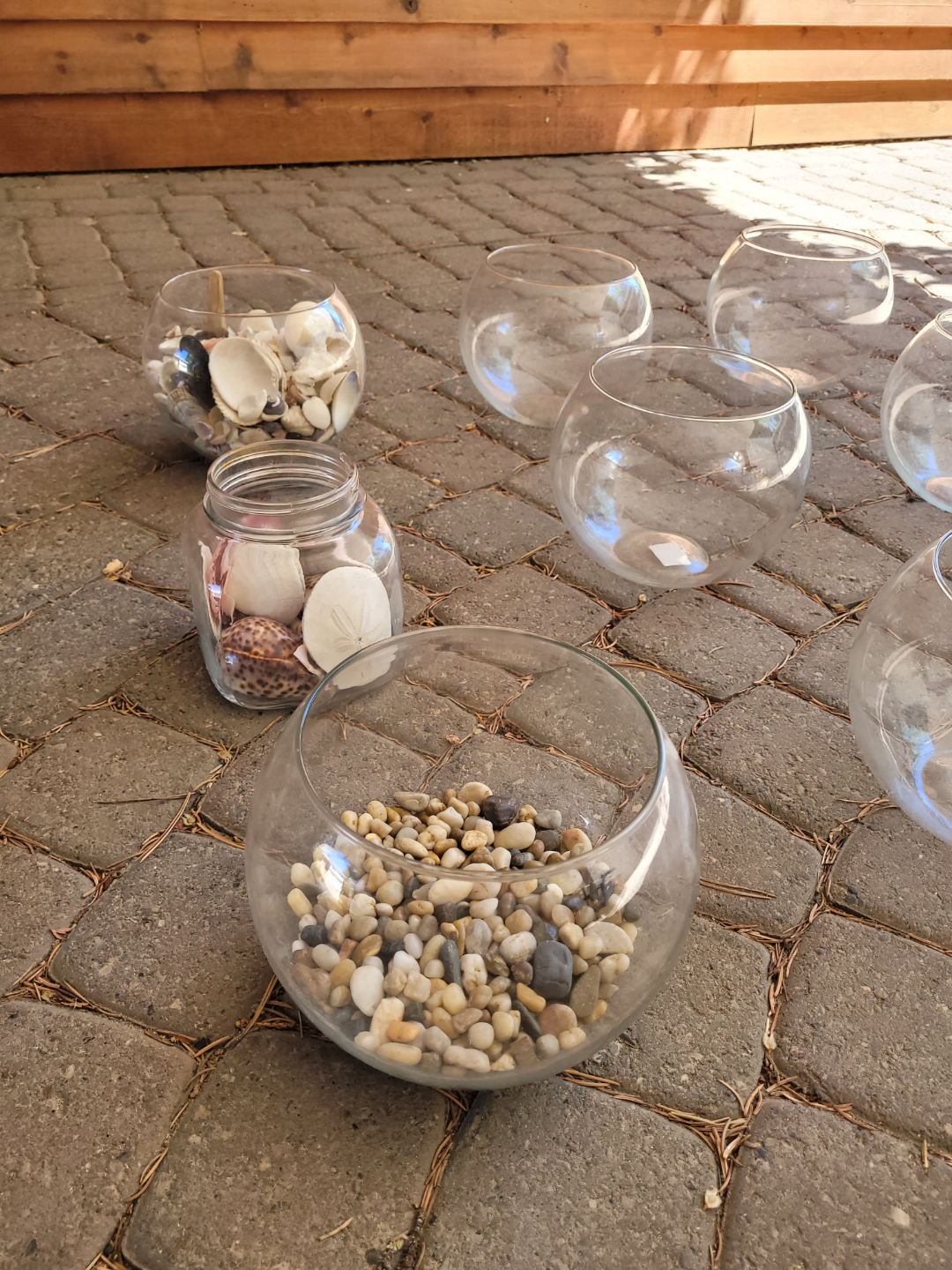 Glass Fishbowls, Decorative Jar, Seashells, and Pebbles