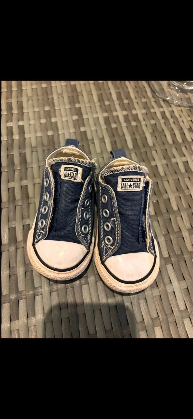 Infant size Converse All Star slip-on shoes. Dark blue denim fabric. Pre-owned, but still has so much life left Smoke free pet free home Pick up can be Rathburn and the west mall area Or Symington and DuPont