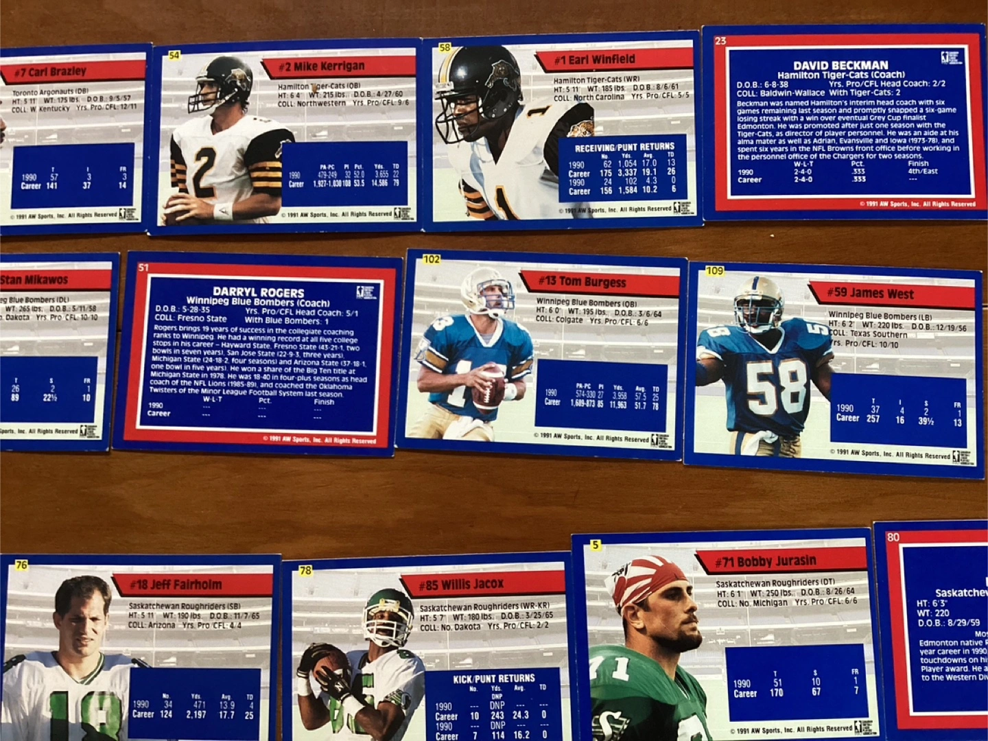 33. 1991 ALL WORLD CFL Collectible Cards !