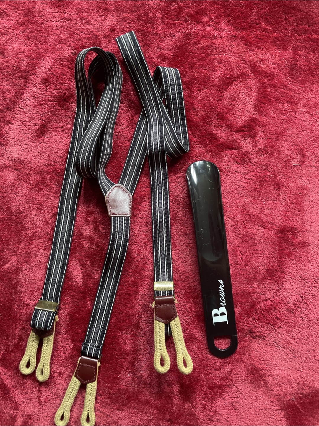 1 / 11 / 1Buy & SellMen's suspenders and shoe hornMen's suspenders and shoe hornFreePair of striped suspenders with leather accents. Includes a Browns shoe horn. Good condition.BrandBrownsWHERE TO MEET310 Lonsdale rd TorontoView MapSELLERPatriciaForest Hill S27737 reviews2 chats·2 favorites·86 viewsSEND CHAT TO SELLERHi Patricia! I’m interested in your listing.Hi Patricia! I’m interested in your listing.Get the Karrot app to chatSign In to chat