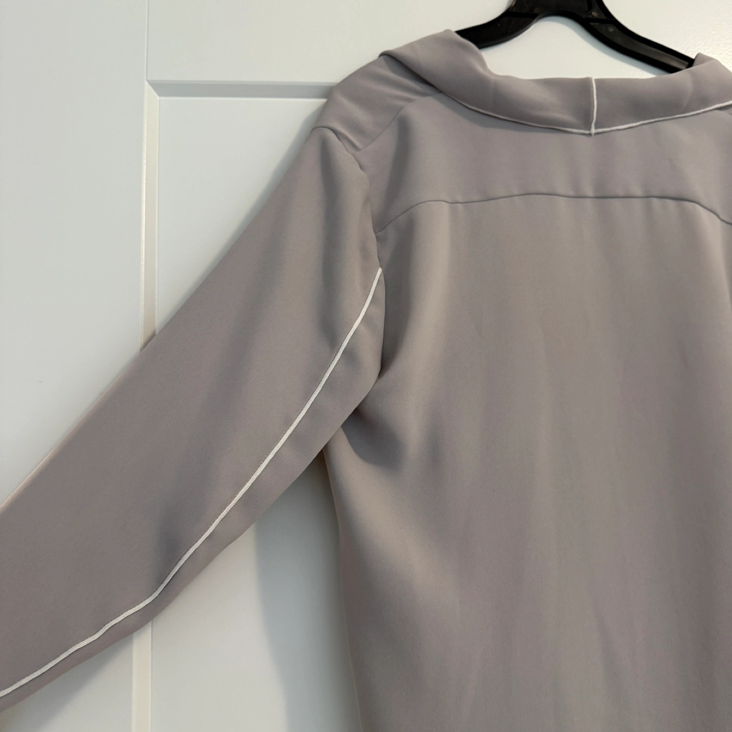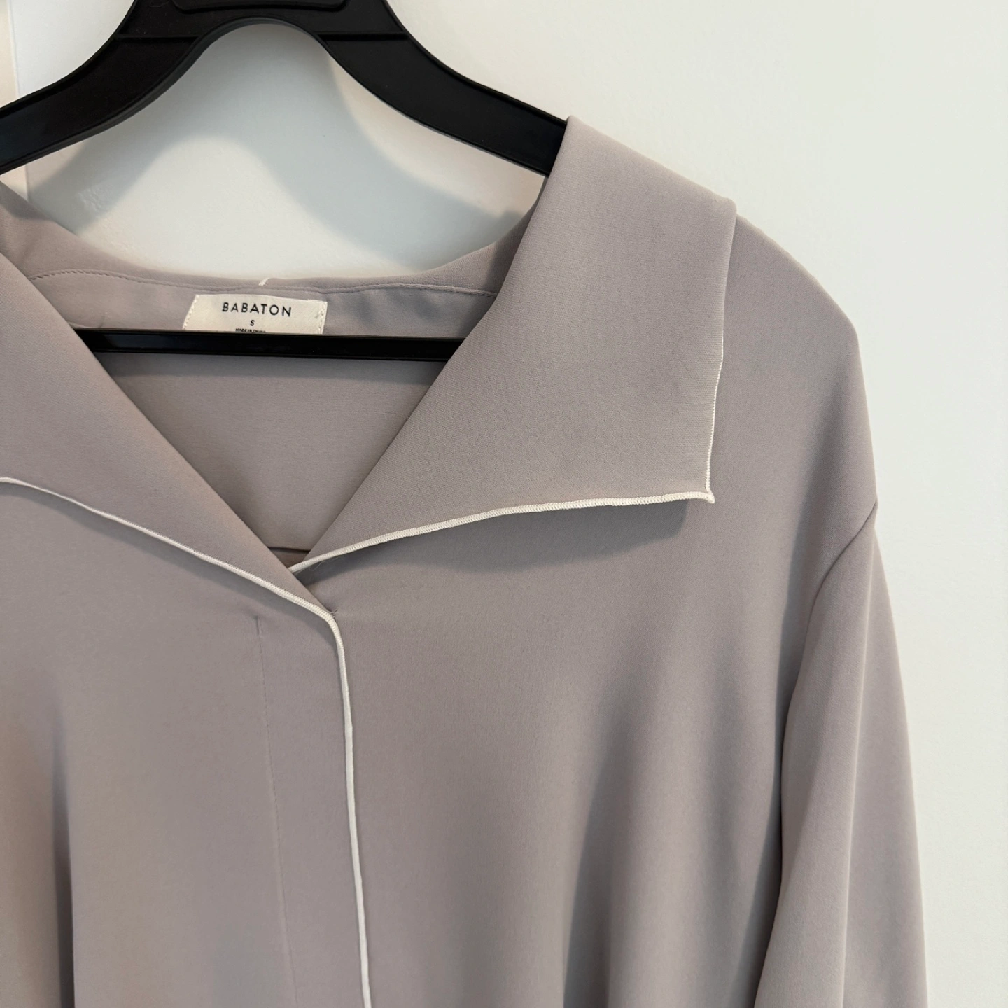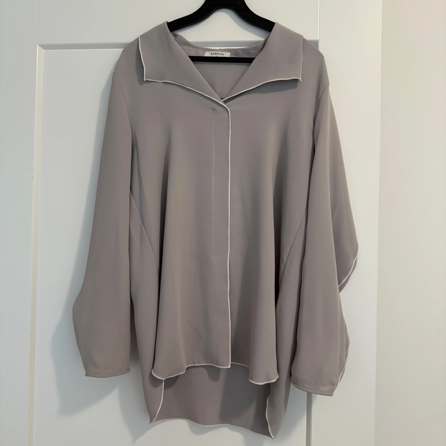 Matte satin blouse with an effortless, unstructured shape that looks and feels feminine. A soft collar and scalloped seams up the back of the arms, adding to the nonchalant feel.