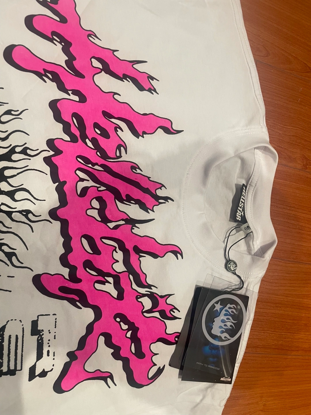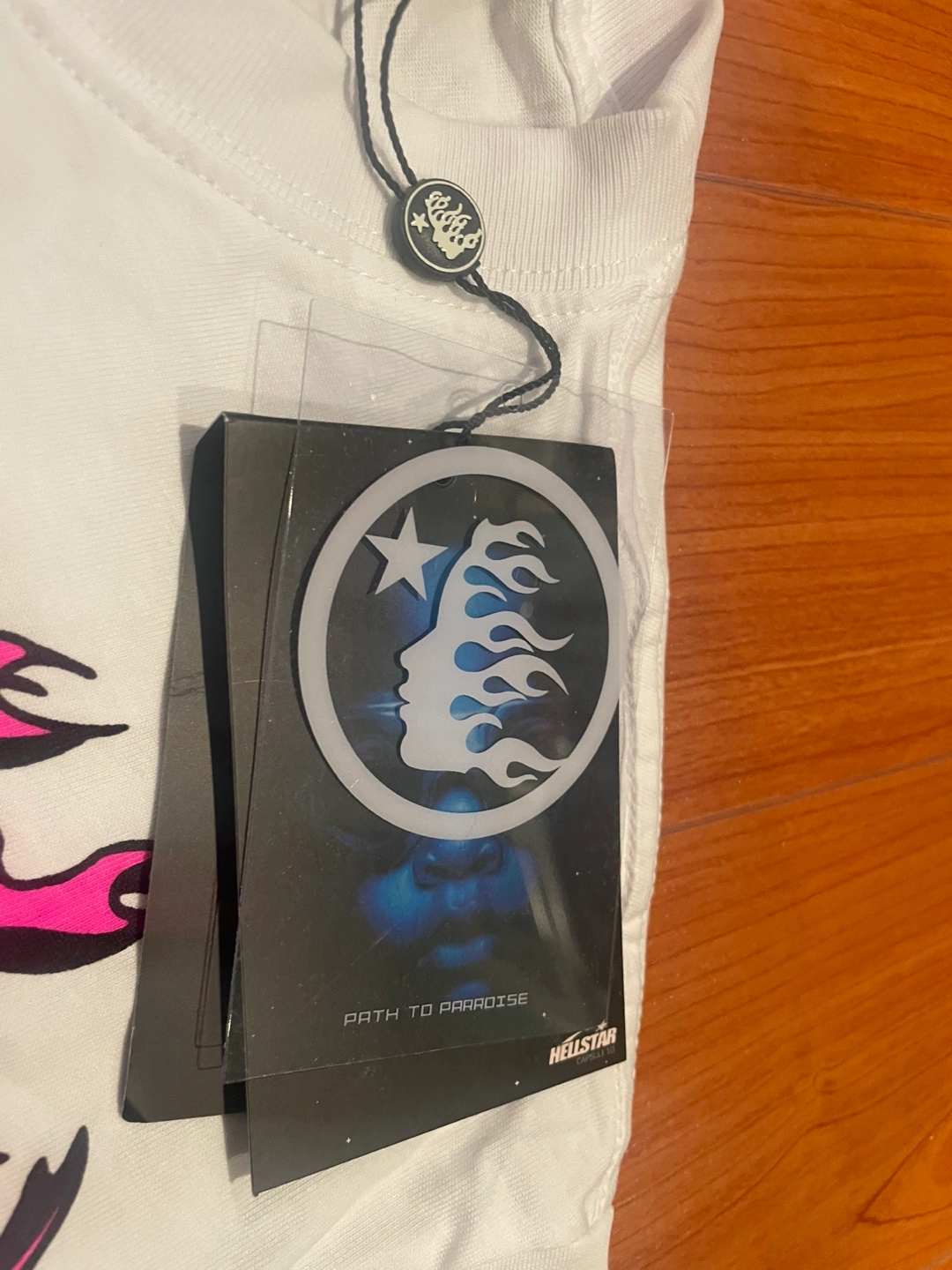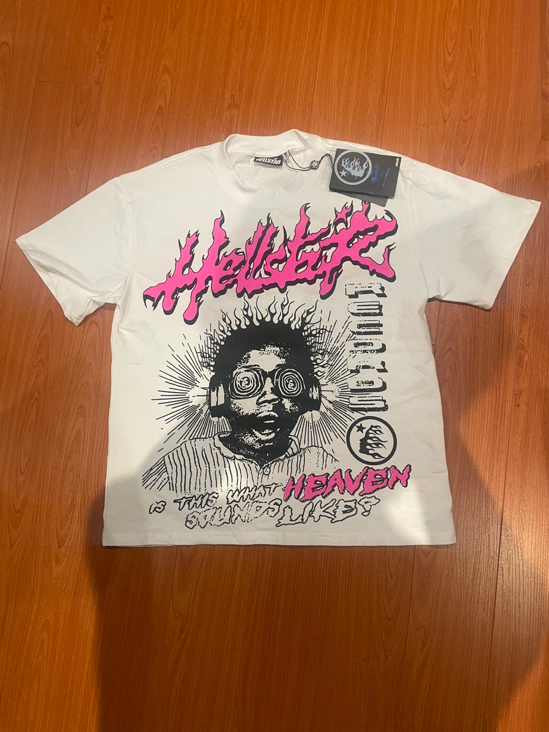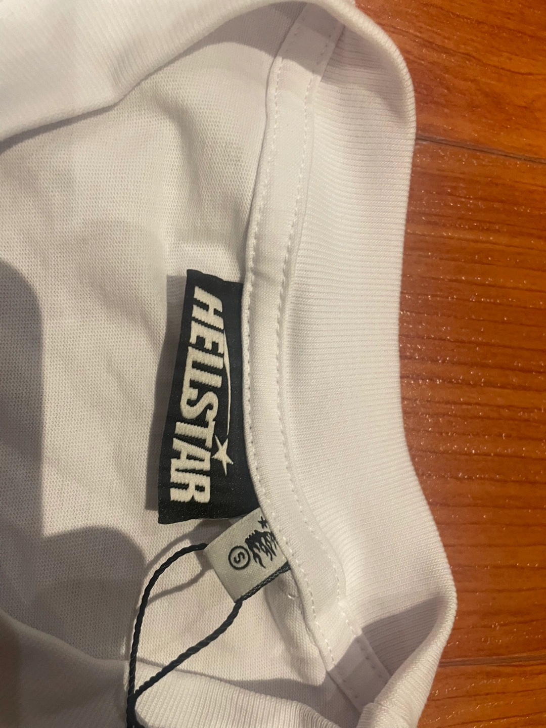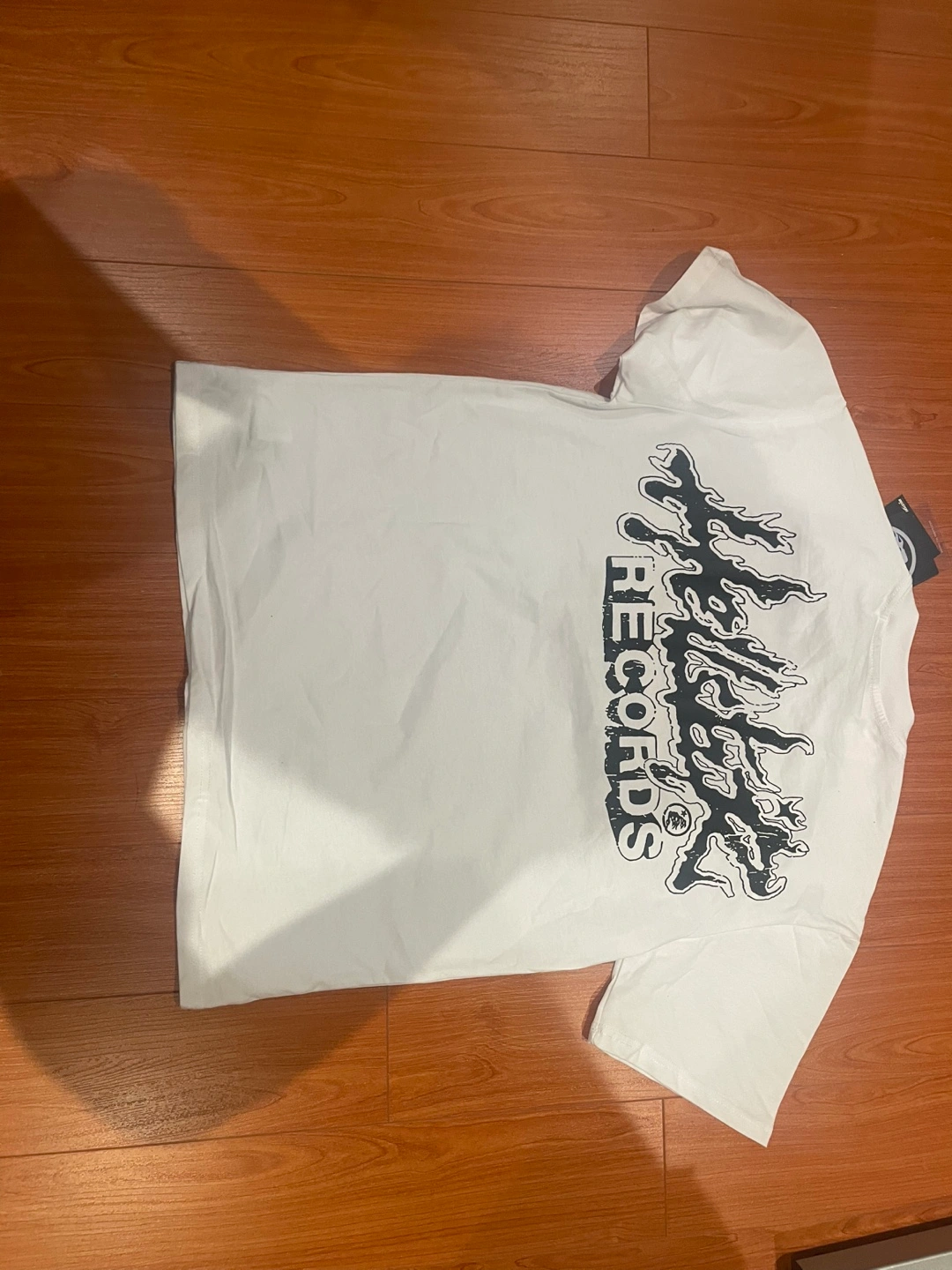 White t-shirt. Features Hellstar Records graphic on front and back. Size small. New with tags and packaging. Got it for a birthday gift but its not my type