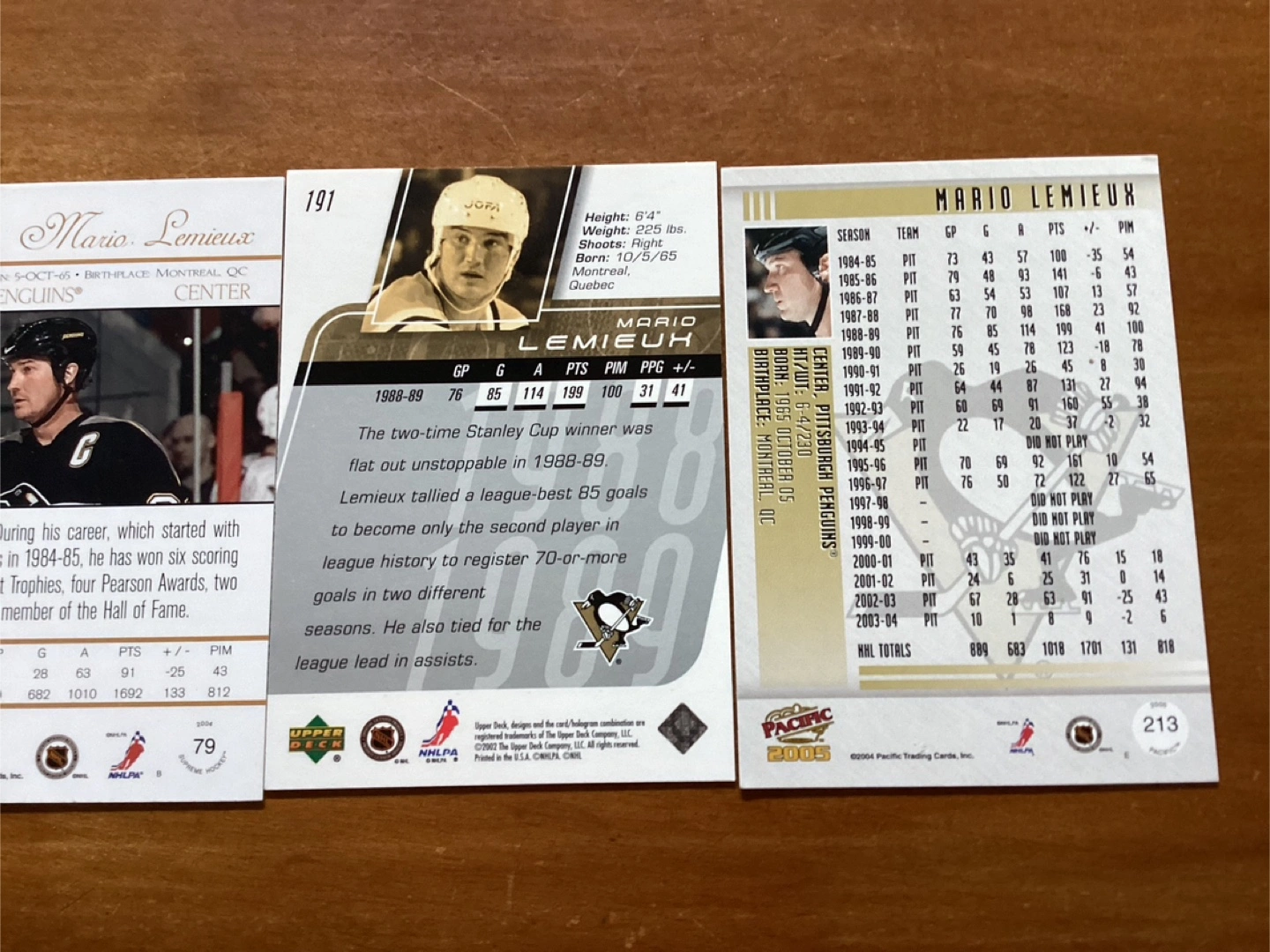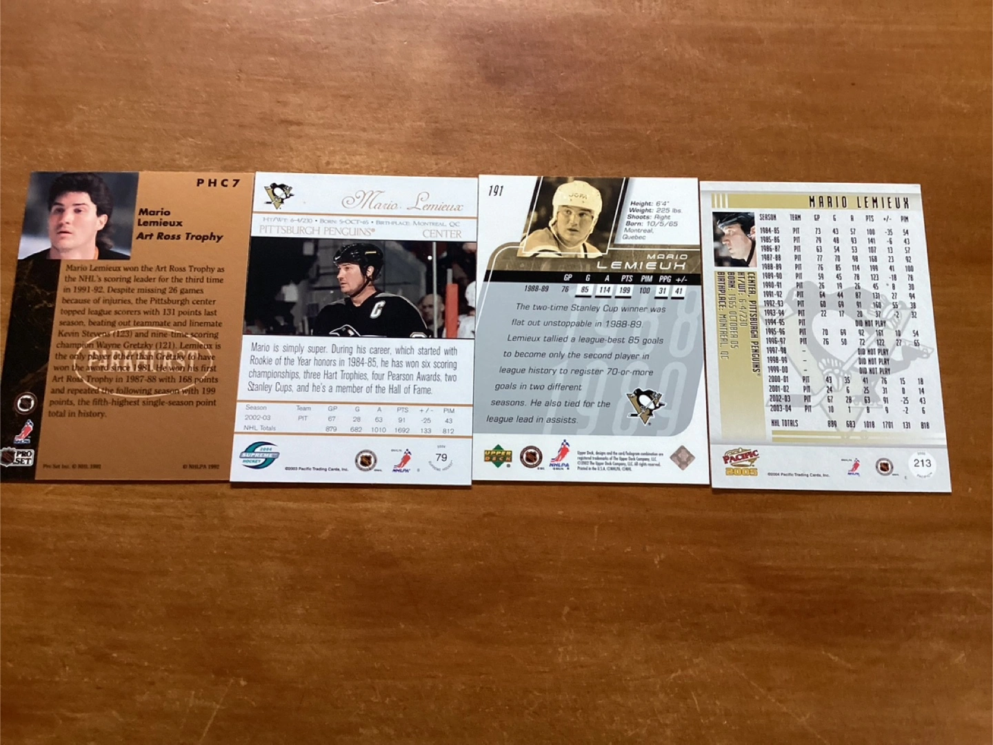4 MARIO LEMIEUX Cards #’s PHC7,79,191 & 213 !