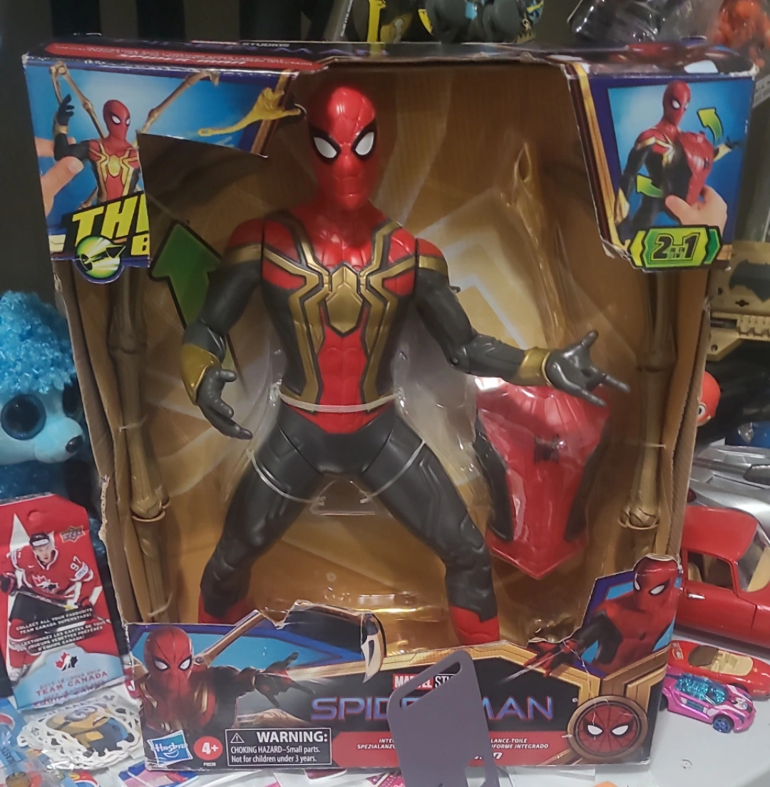 Spider-Man action figure. Includes shield accessory. Collectible toy. For ages 4+