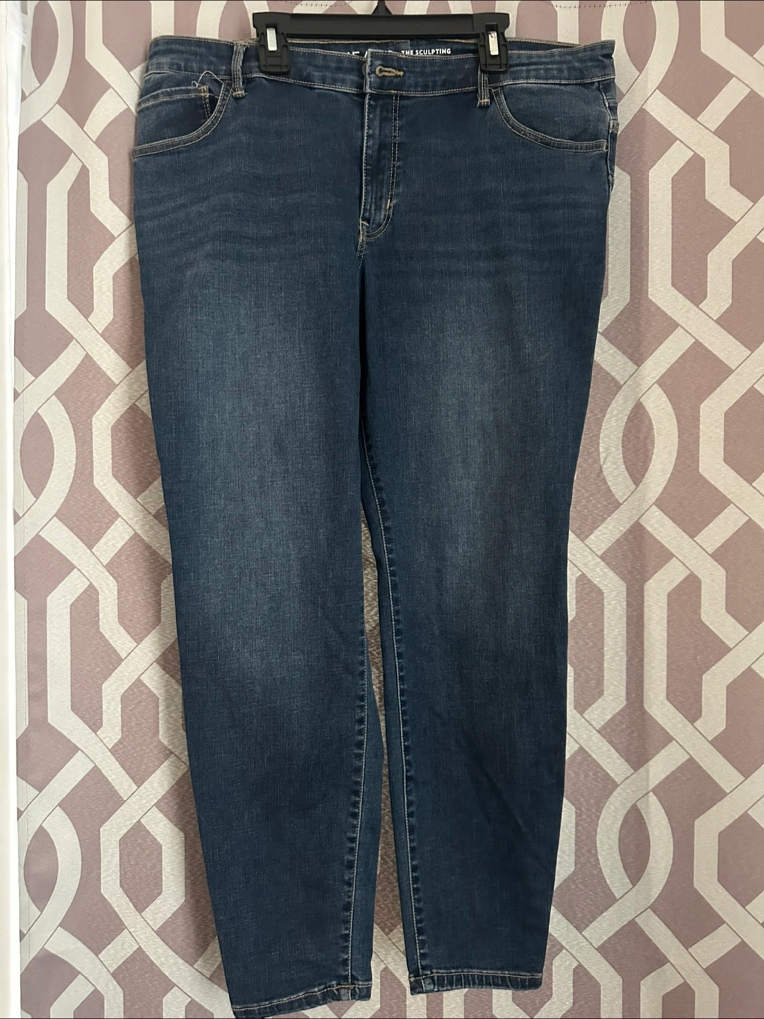 Excellent used condition, only worn a handful of times. Reitmans medium/dark wash denim jeans. Size 34 petites. Style: The sculpting. Slim fit on the leg. 3 working pockets in front and 2 working pockets in back.