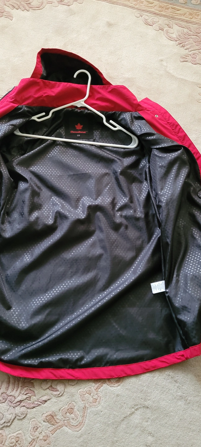 Candiana, National Geographic Women's rain hooded jacket. Size L/G. Features a drawstring waist, snap closures and hood. Brand new never worn.