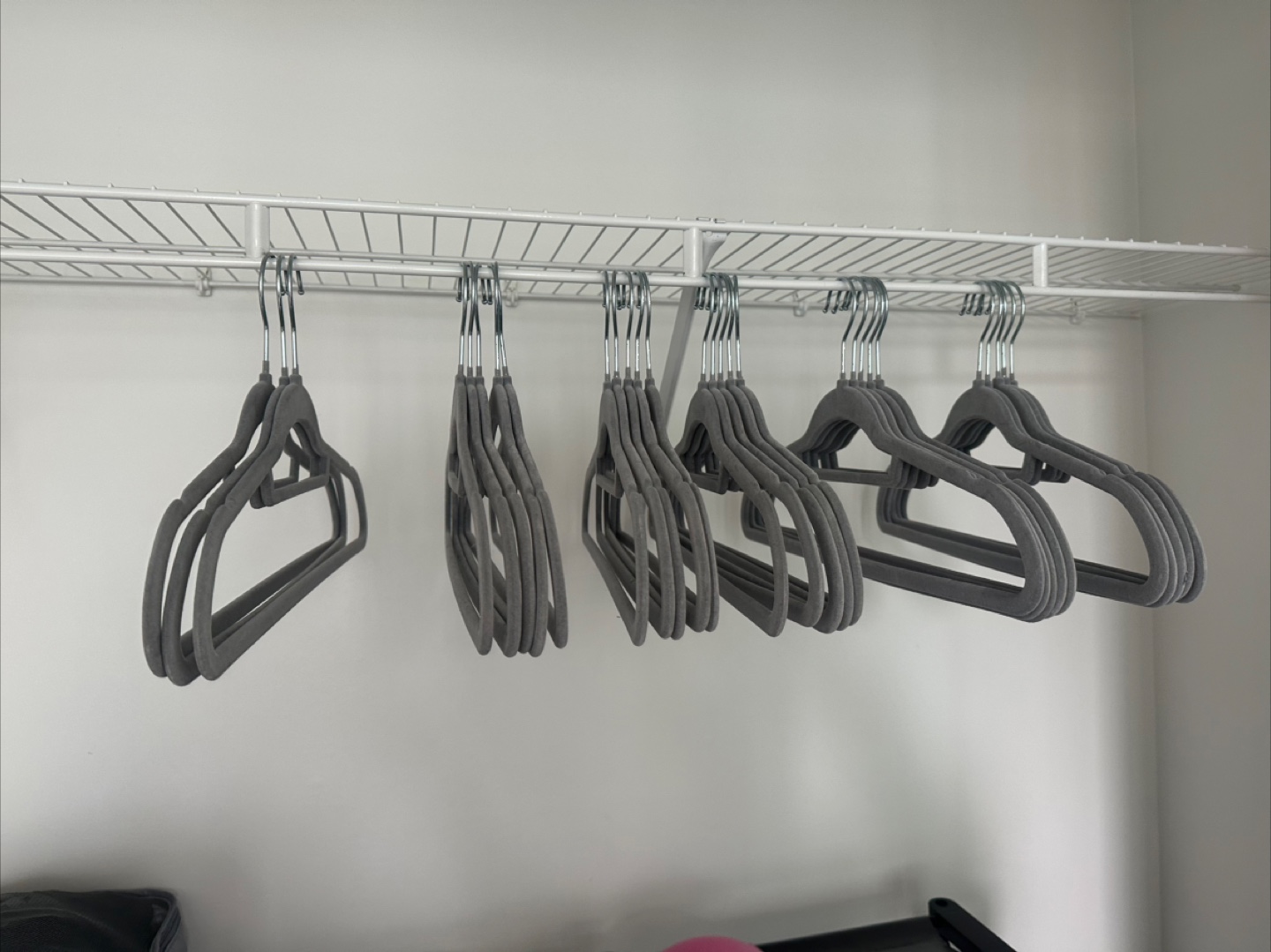 Set of 35 clothes hangers 28 x fabric/velvet hangers 7 x grey plastic hangers All in perfect condition Pickup in Yaletown 😊