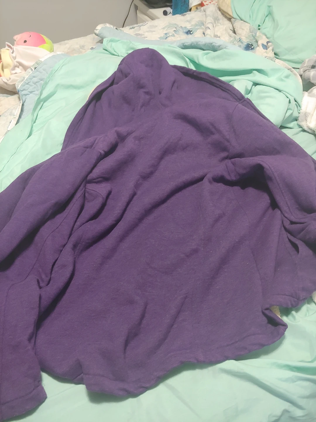 Women's purple hooded jacket. Features a warm sherpa lining. Great for colder weather. Zipper closure.