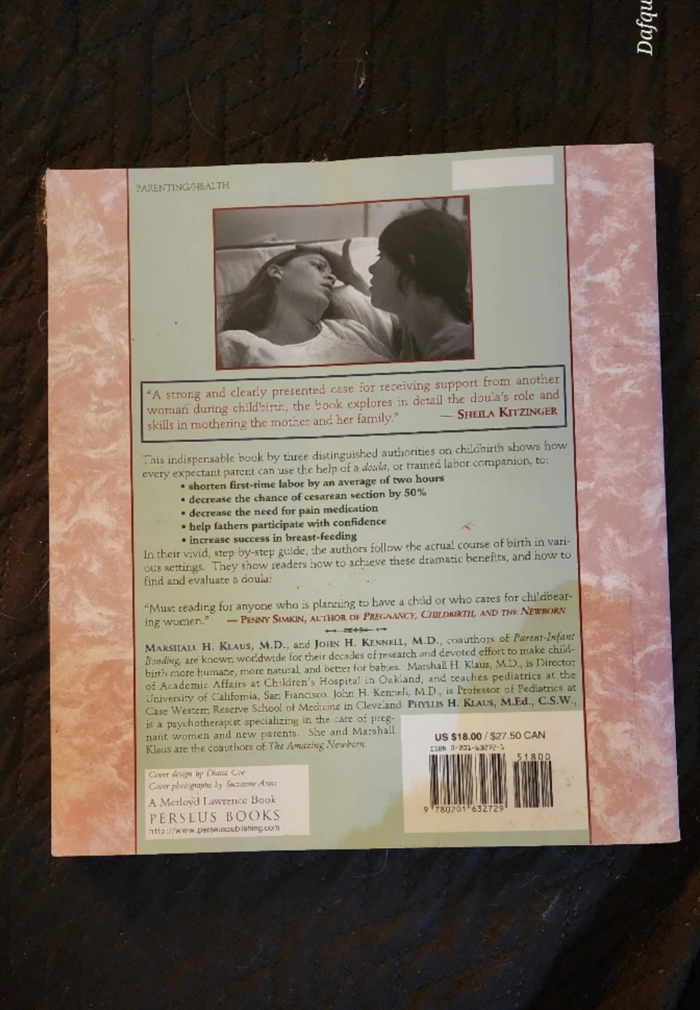 Paperback book. Authors: Marshall H. Klaus, M.D.; John H. Kennell, M.D.; Phyllis H. Klaus, M.Ed., C.S.W. Explores the role of a doula in childbirth. Includes information on shorter, easier, and healthier births. Great for expectant parents.